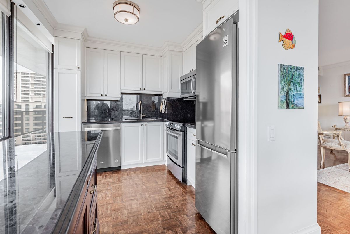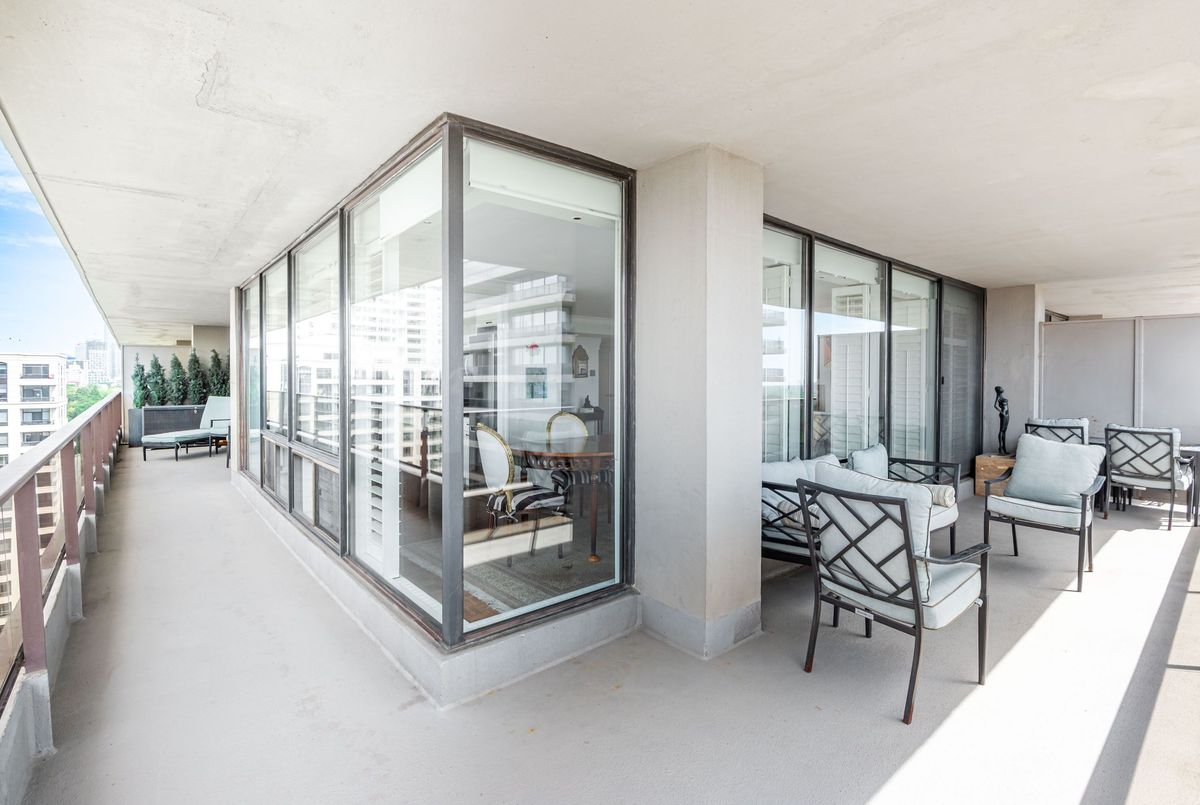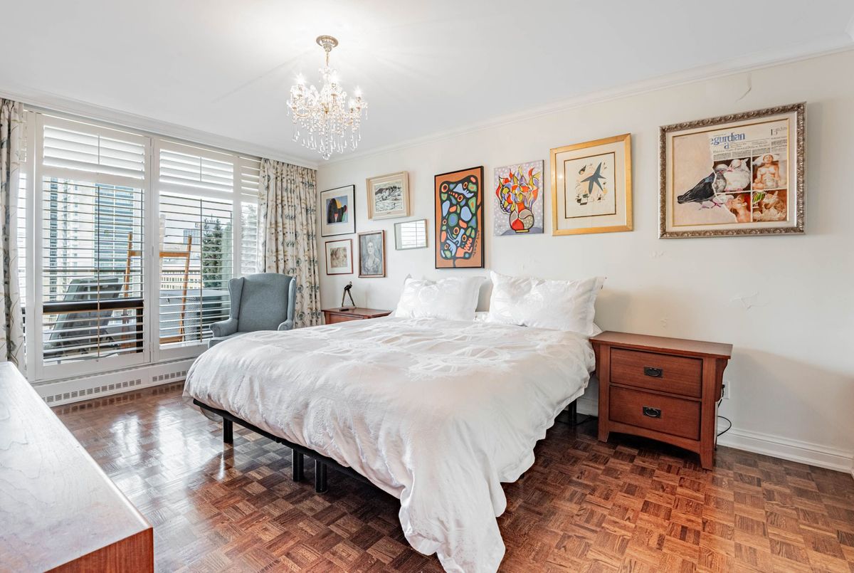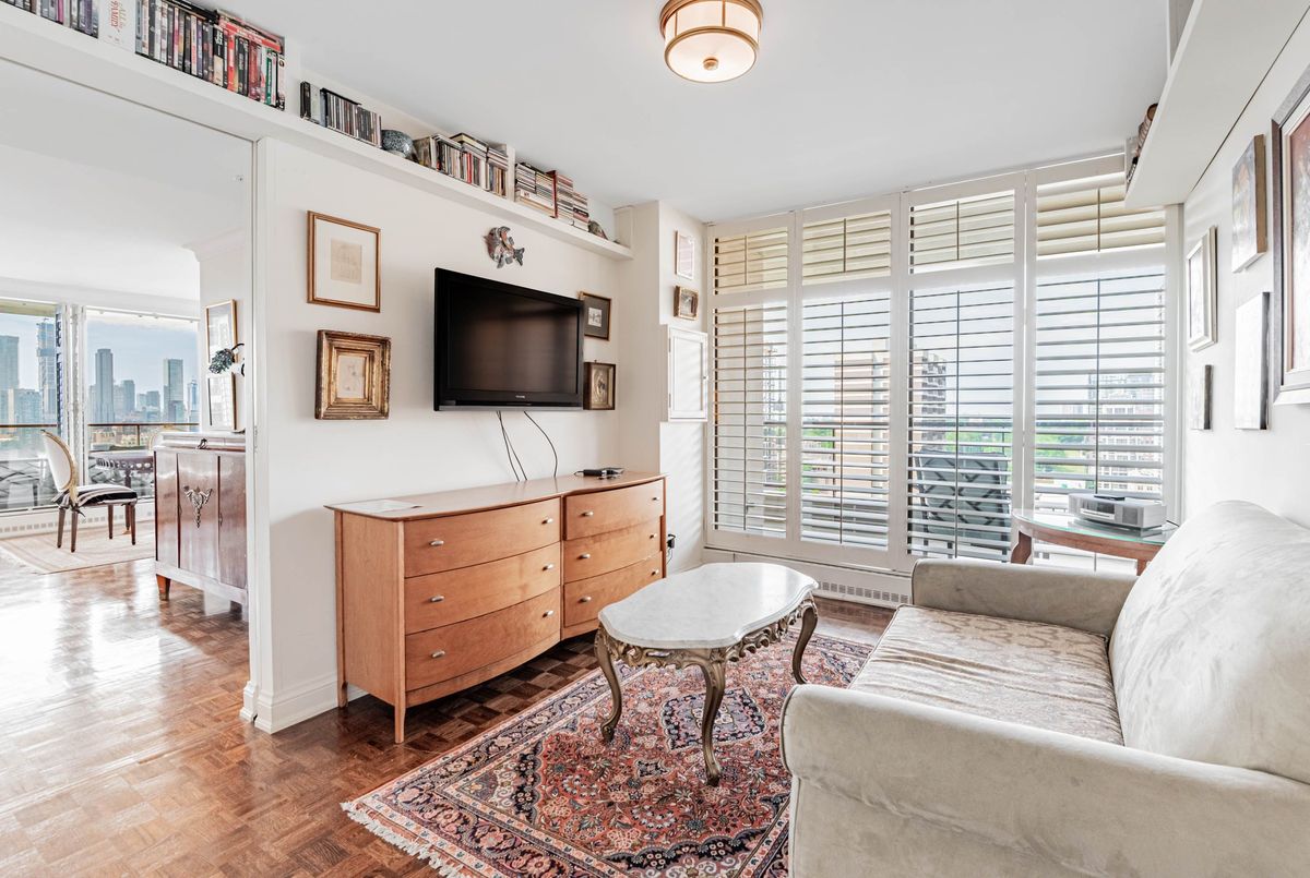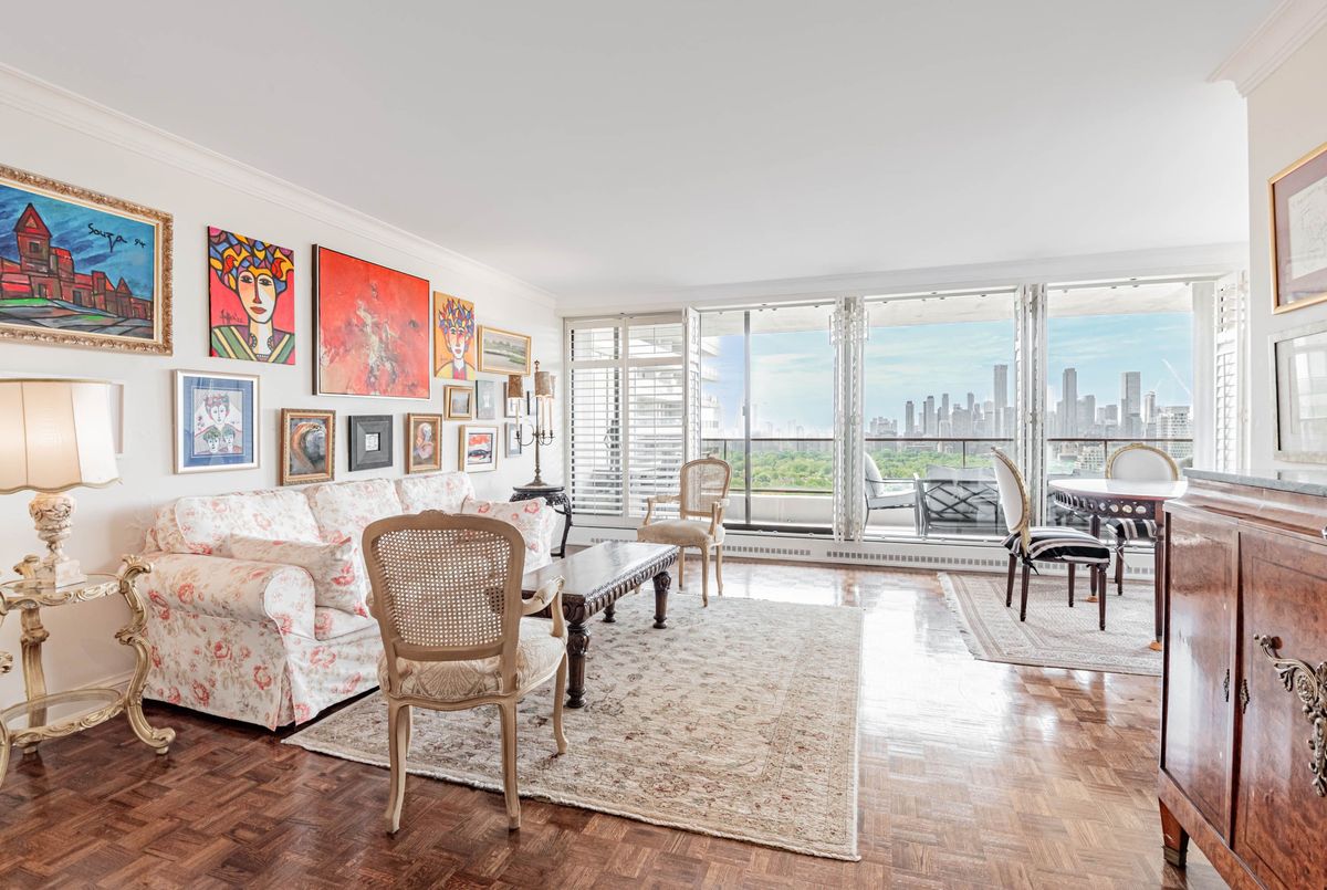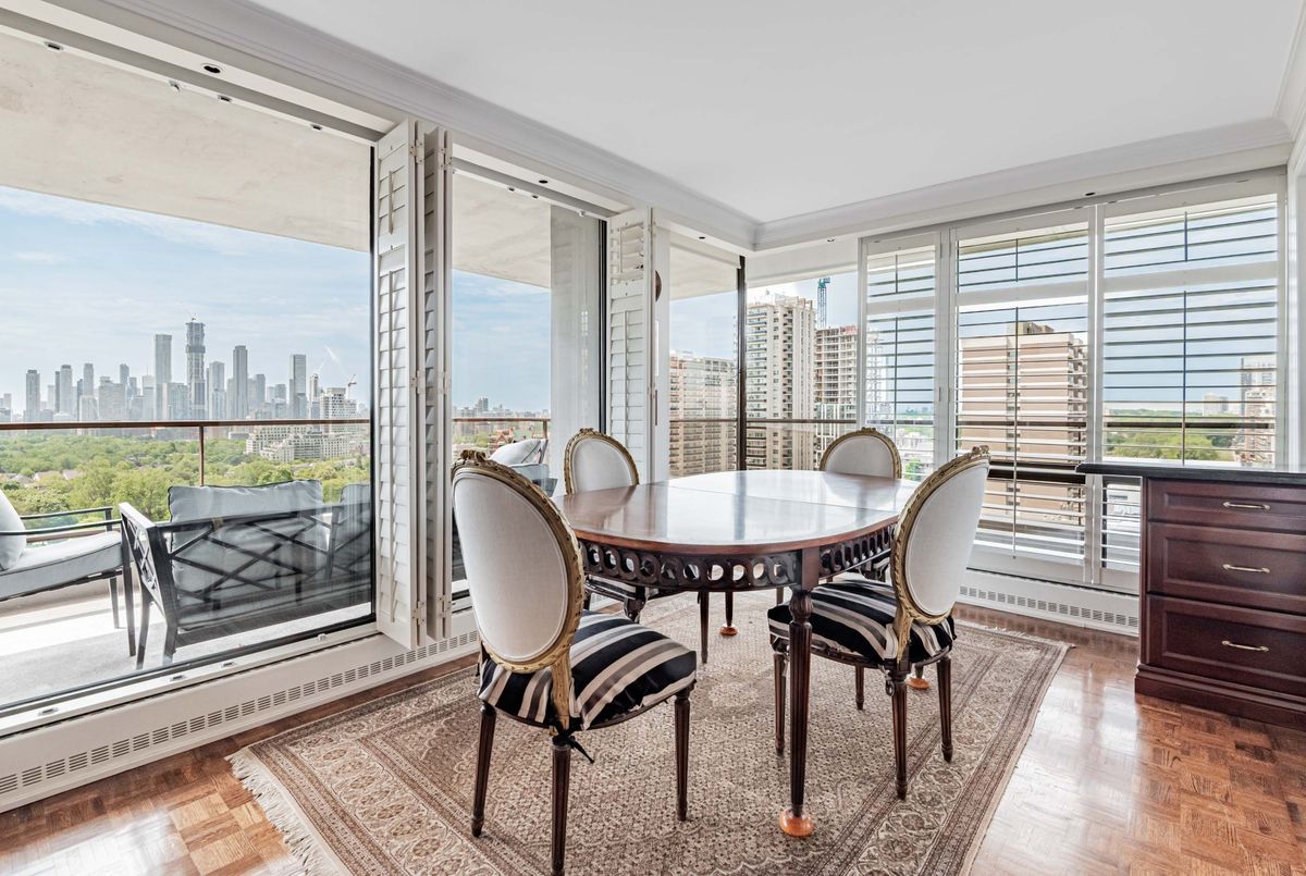 Soaring above the tree-tops with clear views of the south city skyline and David Balfour Park, this stunning corner suite offers an exceptional lifestyle in a coveted midtown location. Rarely offered, this 2-bedroom, 2-bathroom residence boasts approximately 1,106 sq.ft. of interior living space plus 474 sq.ft. of outdoor space. A beautifully proportioned layout includes multiple walk-outs to a wraparound balcony, perfect for enjoying morning coffee or evening sunsets. Floor-to-ceiling windows flood the open-concept living and dining area with natural light, enhancing the airy, inviting atmosphere. The modern kitchen is both stylish and functional, outfitted with black granite countertops, a sideboard for extra storage and prep space, and an integrated eating counter. The spacious primary bedroom includes a walk-in closet and a renovated 3-piece ensuite bath. The second bedroom, complete with a double closet, enjoys access to its own updated 3-piece bathroom perfect for guests or shared living. Residents of this well-managed co-op building enjoy an array of luxury amenities: 24-hour concierge, on-site property management, a serene outdoor pool surrounded by mature trees and manicured grounds, an exercise room, hobby room, library, party/meeting room, laundry facilities, EV charging stations, car wash bay, bike storage, and ample visitor parking. Underground rental parking space, as available and the use of one out-of-suiite storage locker for added convenience. Ideally located just steps to the Yonge/St. Clair subway, shops, cafes, dining, the public library, and nearby ravine trails, this home blends the best of urban living with the tranquility of a park-side setting. The maintenance fee includes: property taxes, hydro, heat, water, central air, basic cable TV, internet, building insurance and common elements. Note: Avoca Apartments Limited does not permit pets, rentals, or ensuite laundry.