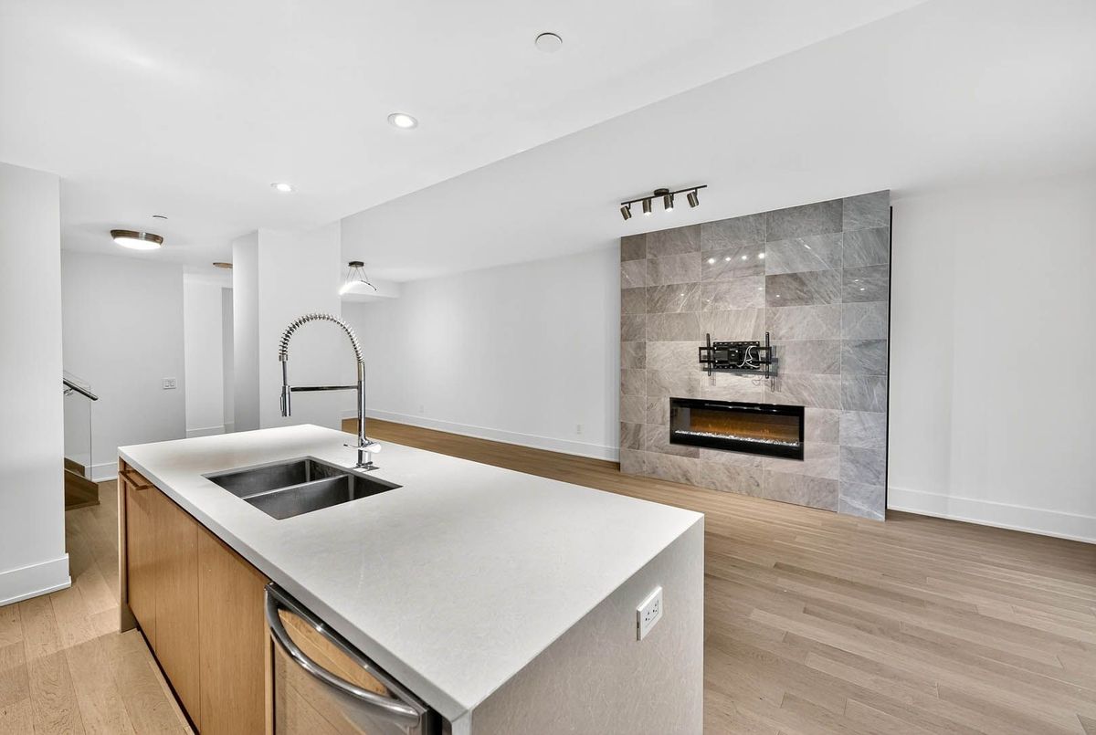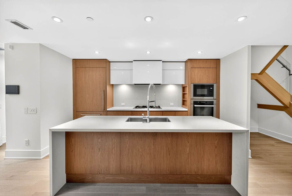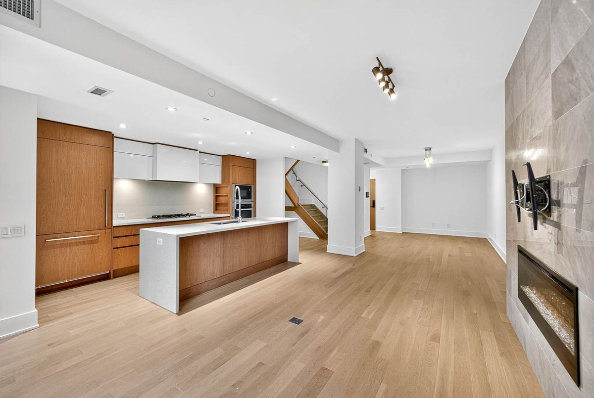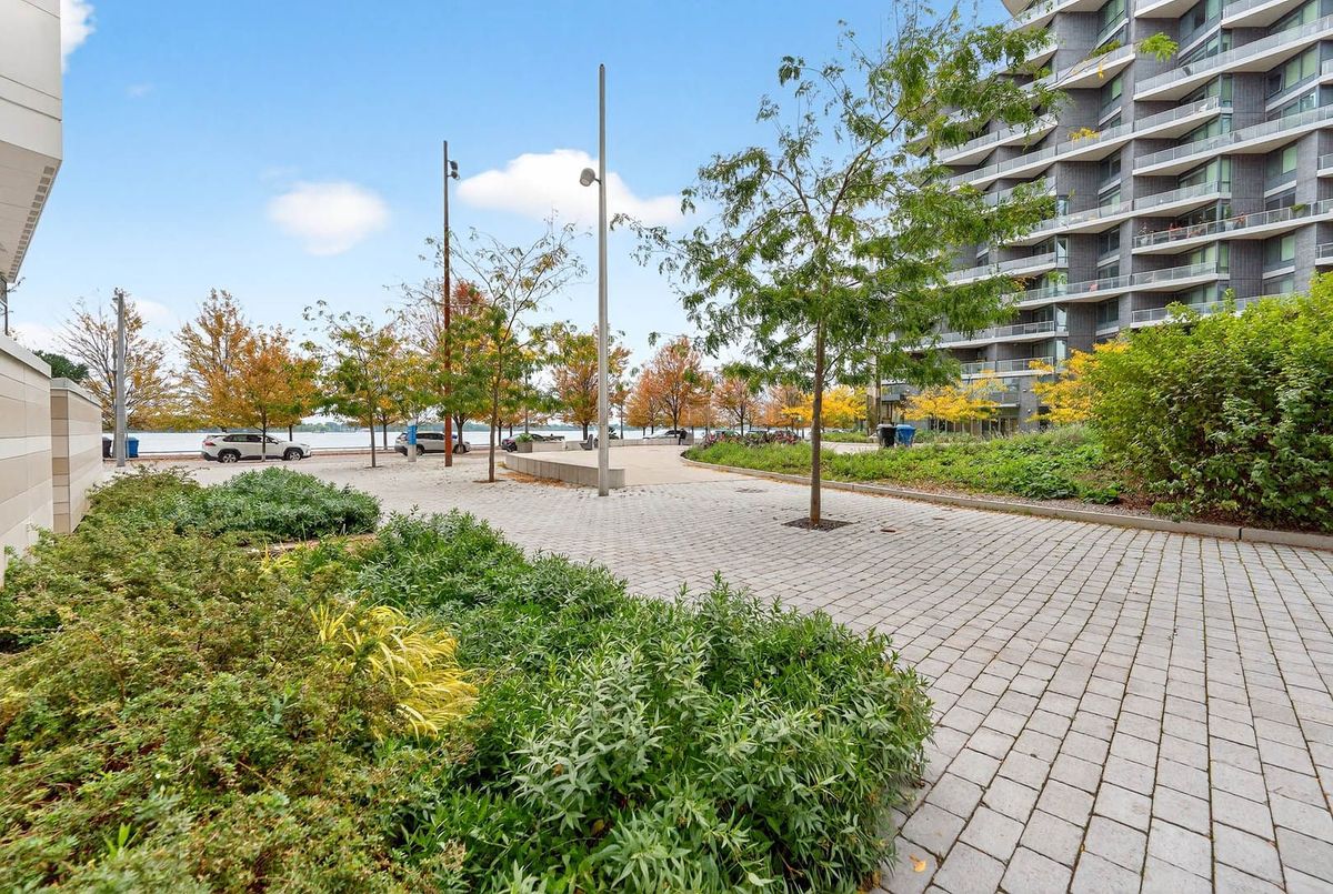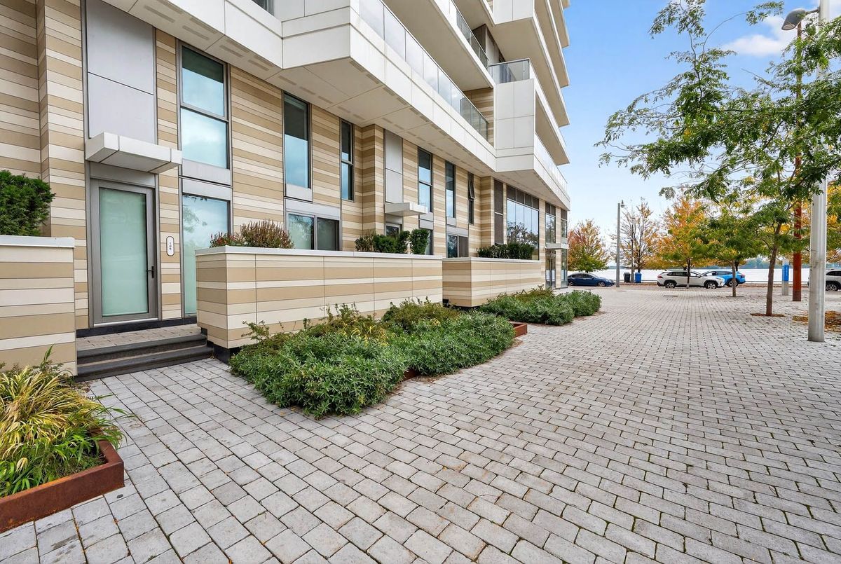 Experience waterfront living at its finest in this two-storey townhouse at Aquabella by Tridel. Situated on the ground level and facing the park, this 2-bedroom plus den, 3-bath residence offers 1,848 square feet of thoughtfully designed space with a private street-level entrance and personal terrace, perfect for pet owners, young families, or anyone who prefers to skip the elevator. The open-concept main floor features a sleek kitchen with Miele appliances, a gas cooktop, and a large island that anchors the living and dining area. A cozy fireplace adds warmth and charm, while smooth white ceilings and expansive windows create an airy, inviting feel. Upstairs, both bedrooms are spacious and bright, complemented by a versatile den with sliding doors that can easily convert into a third bedroom or home office. An additional office nook beneath the staircase adds even more functional space. The oversized laundry room includes a sink and ample storage for household essentials. Enjoy the best of city and nature, just steps from new Biidaasige Park, Cherry Beach, Sugar Beach, running and bike trails, and the harbourfronts dining and café scene. A new Leos Marché grocery is opening nearby, with the Distillery District and St. Lawrence Market only a short walk away. Building amenities include a stunning rooftop pool with cabanas, a fitness centre, theatre, saunas, party room, guest suites, and visitor parking. Two Electric Vehicle parking spaces and one locker are included. This rare townhouse combines the comfort of a private home with the luxury and convenience of resort-style condominium living right on the water's edge.