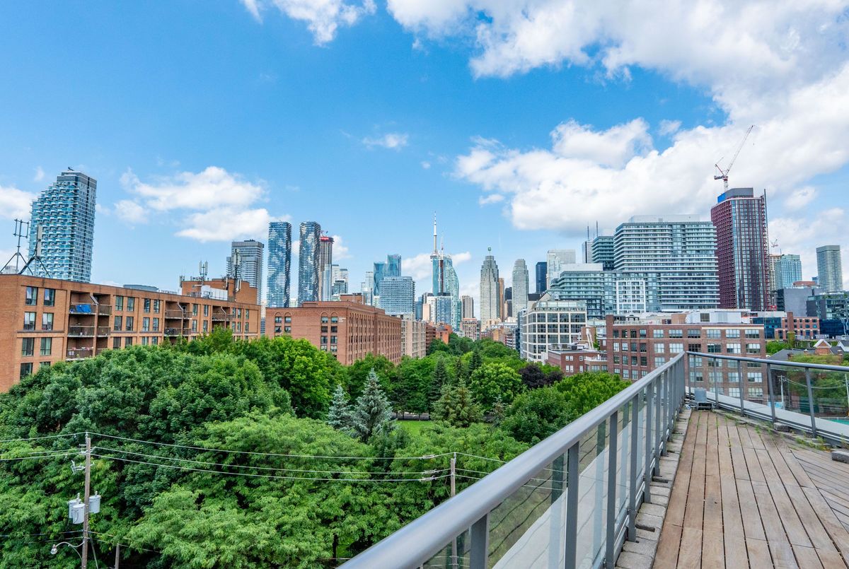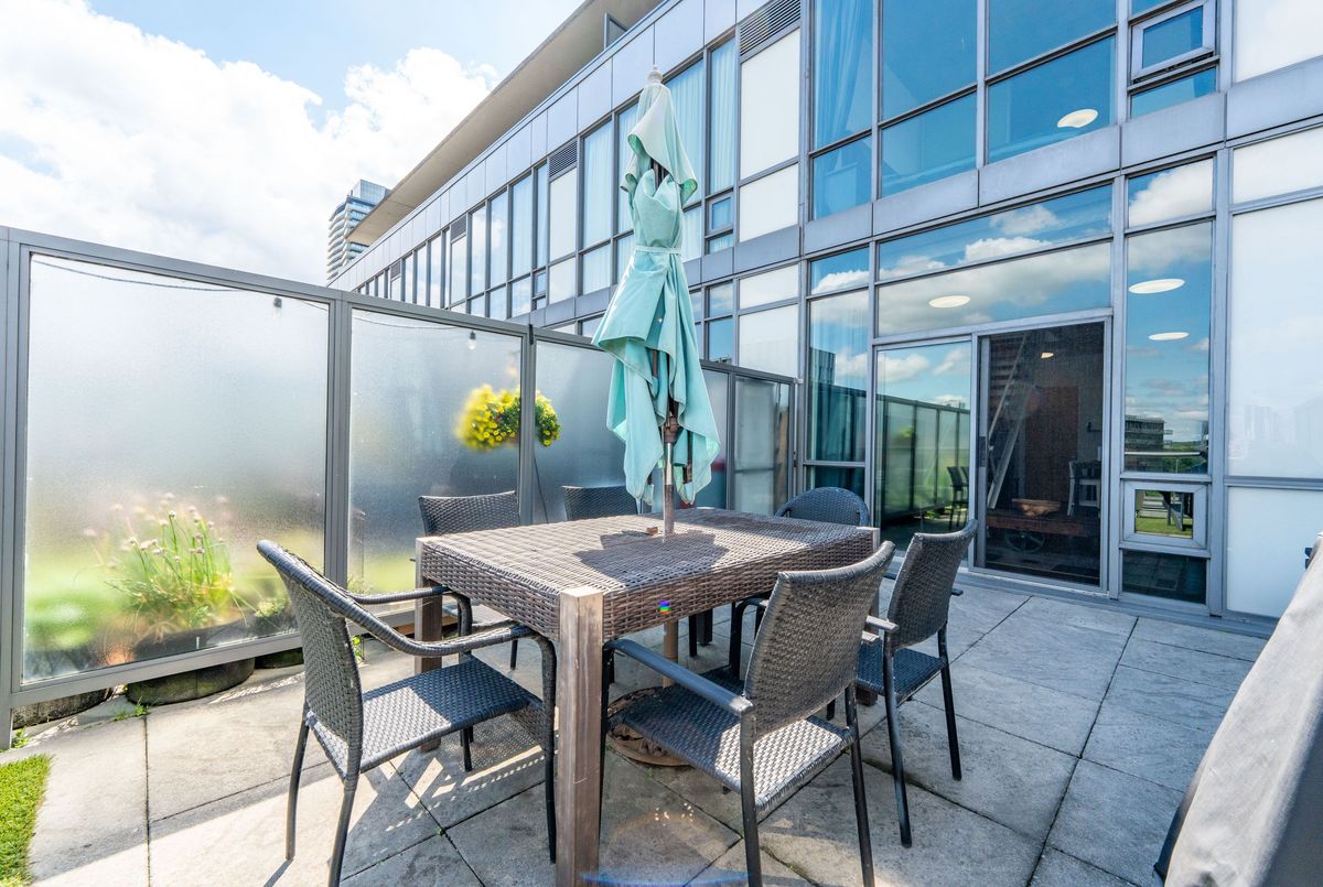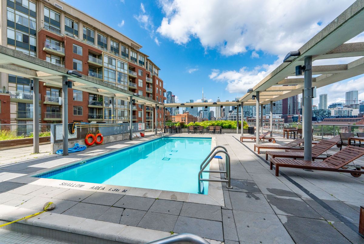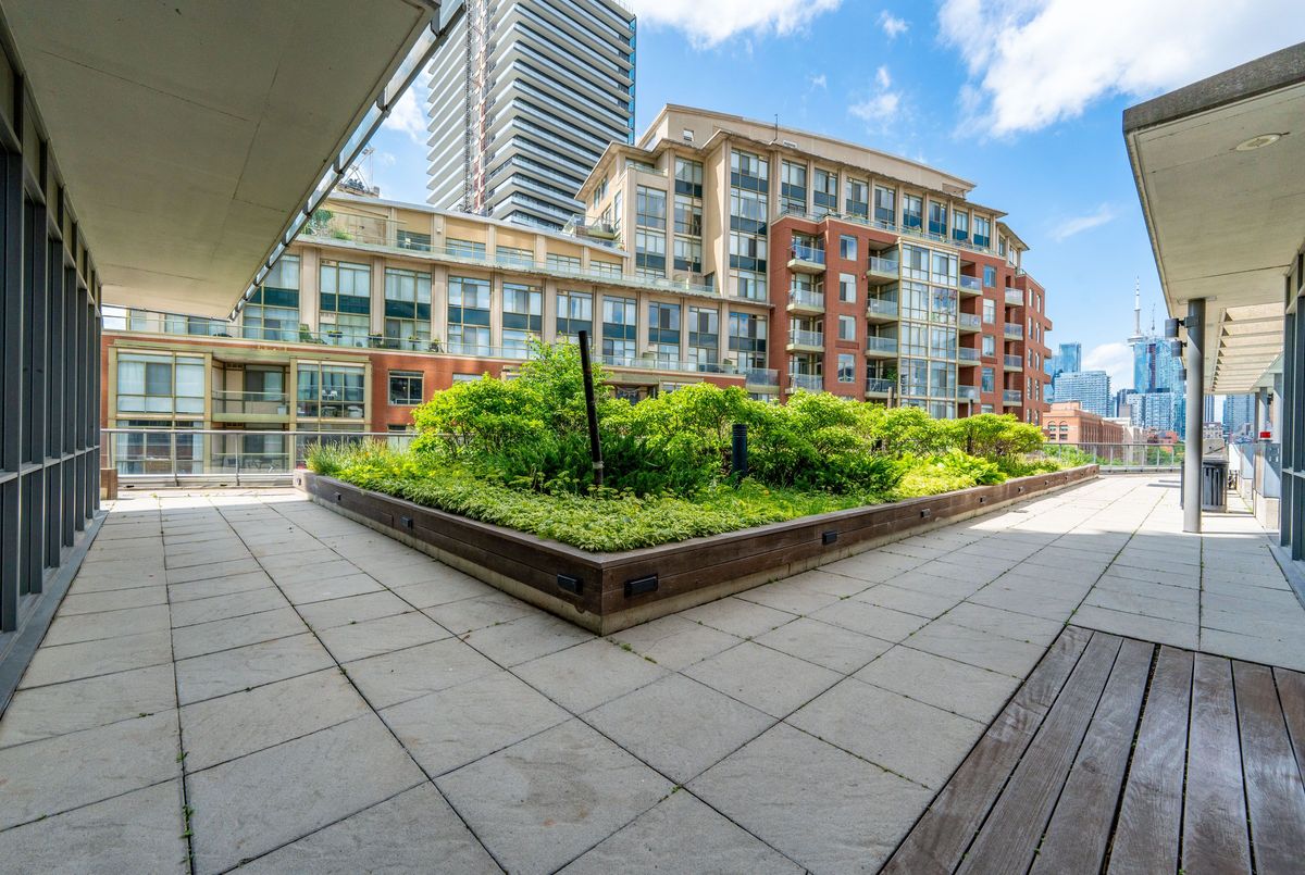 Welcome to urban sophistication in the heart of Torontos iconic Distillery District. This rare 2-storey 1+den suite offers a perfect blend of architectural charm and modern convenience, featuring a massive 330 sq ft private terrace, one of the few in the building where BBQs are permitted, an exclusive perk reserved for 6th-floor units. Ideal for entertaining or unwinding outdoors, this terrace expands your living space in every season. Inside, enjoy a bright open-concept layout with floor-to-ceiling windows, soaring ceilings, and sleek modern finishes. The main level is perfect for hosting, while upstairs, the spacious primary bedroom offers privacy and comfort. The versatile den easily functions as a home office or guest space. A rare owned parking spot is included. Residents enjoy outstanding amenities: a rooftop garden with an outdoor pool and communal BBQs, fully equipped gym, and 24-hour concierge service. Monthly condo fees are an excellent value at $727.39, less than $1 per square foot, a standout offering considering the buildings features and lower than comparable towers in the area. Step outside into the cobblestone charm of the Distillery District, filled with boutique shops, acclaimed restaurants, art galleries, and year-round cultural events. Stroll to St. Lawrence Market, Corktown, or take in lakeside trails, all within minutes. TTC streetcar service is at your doorstep, with easy access to Union Station, the DVP, and Gardiner Expressway, and the future Ontario Line subway station now under construction will further elevate the areas exceptional connectivity. This is your opportunity to own a truly unique residence in one of the citys most desirable historic neighbourhoods.