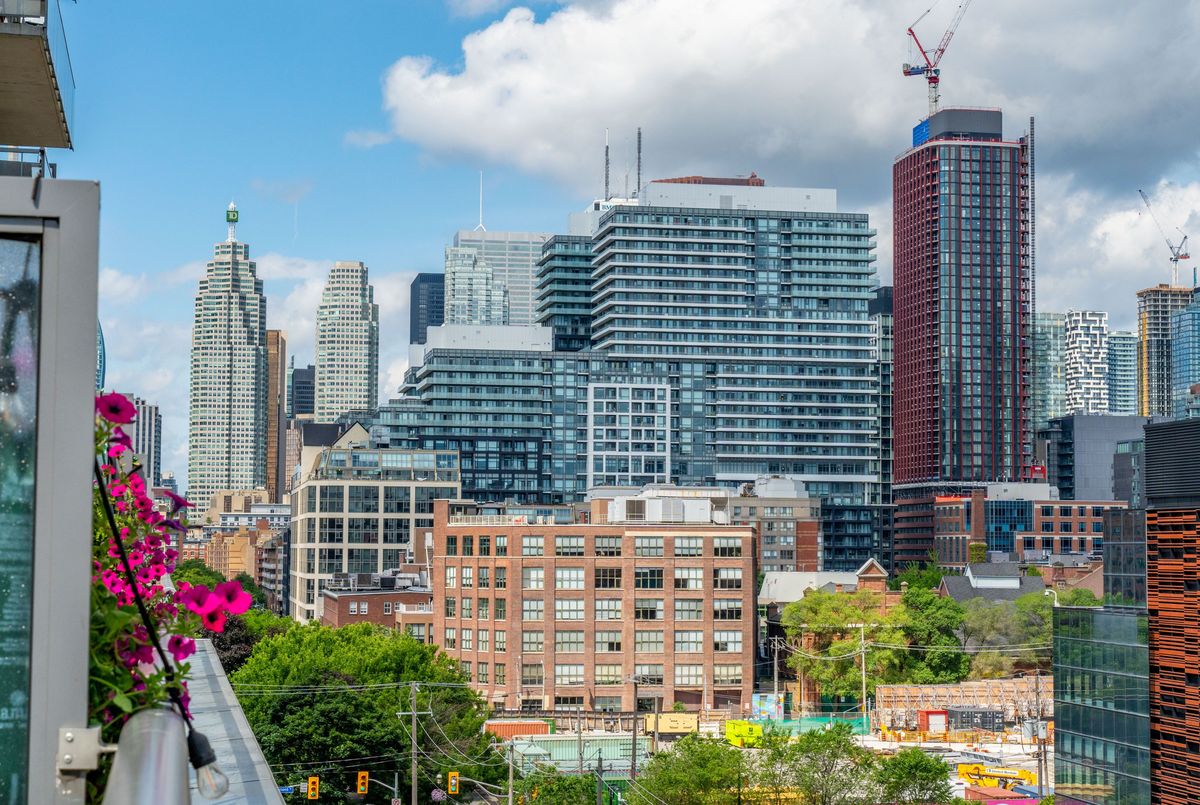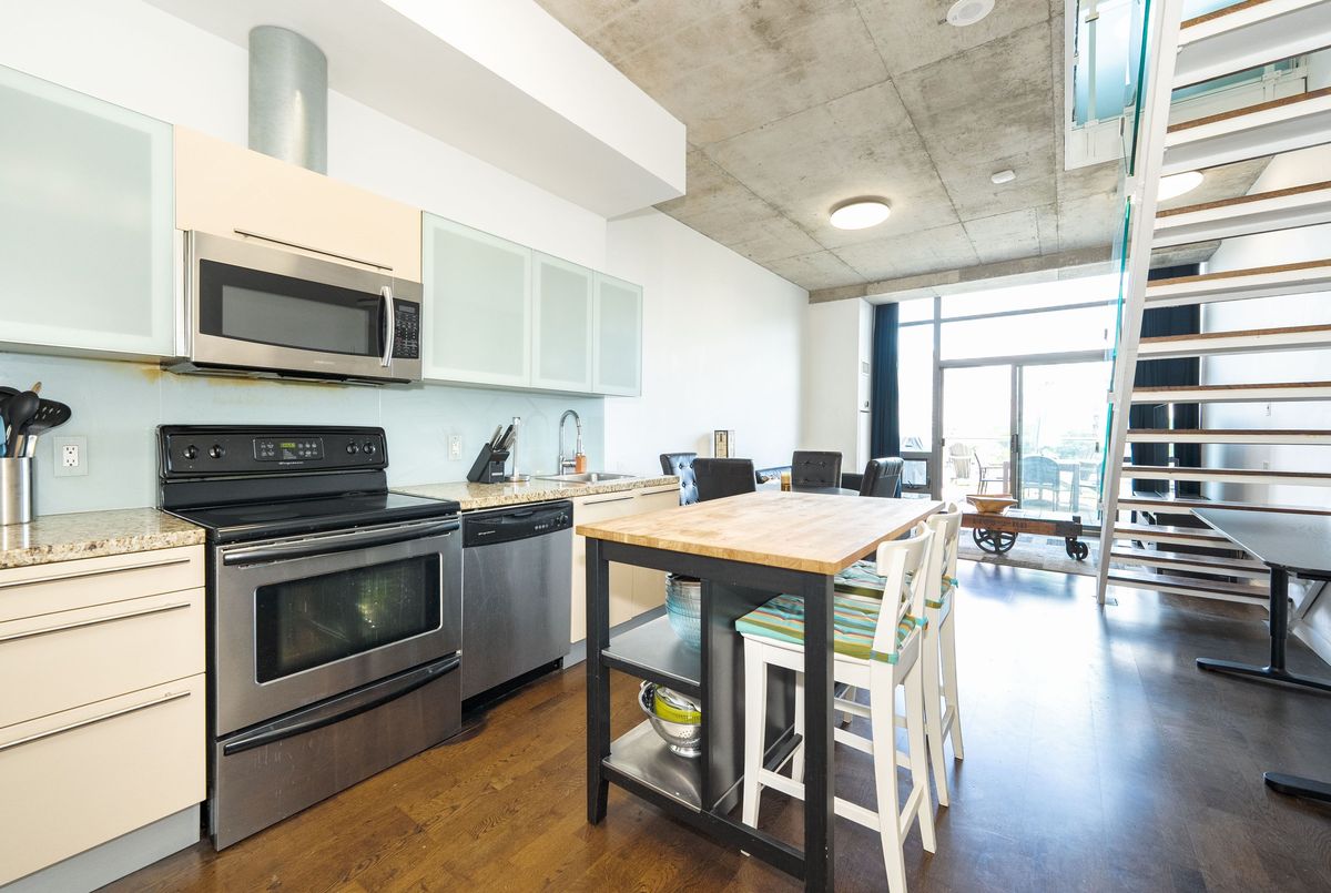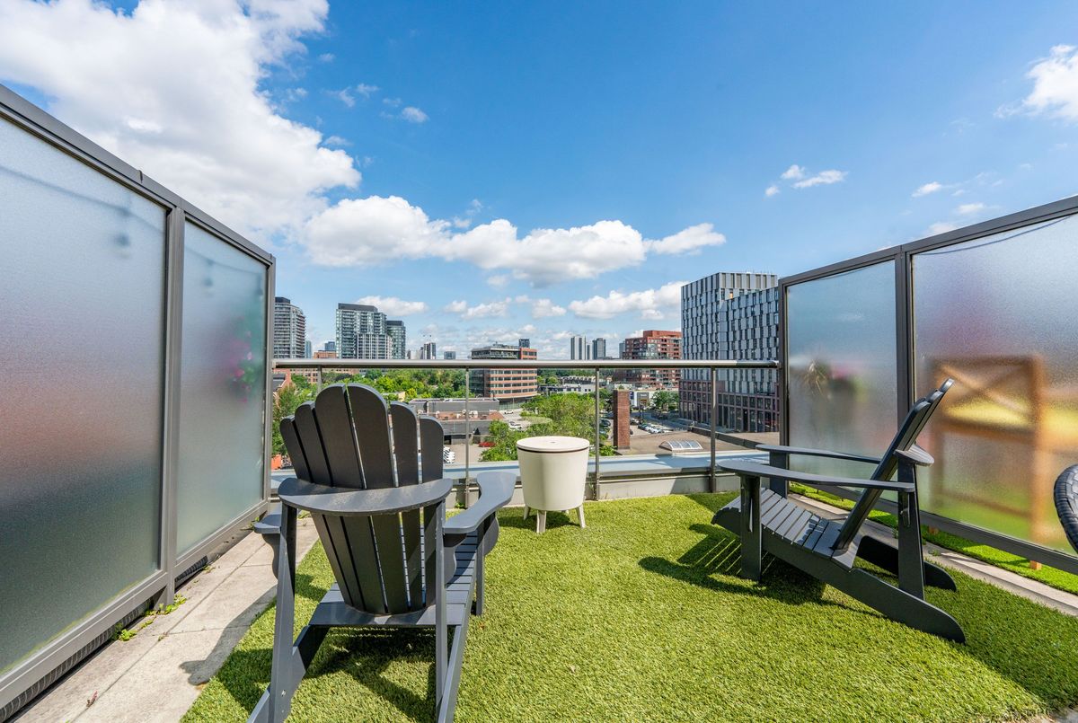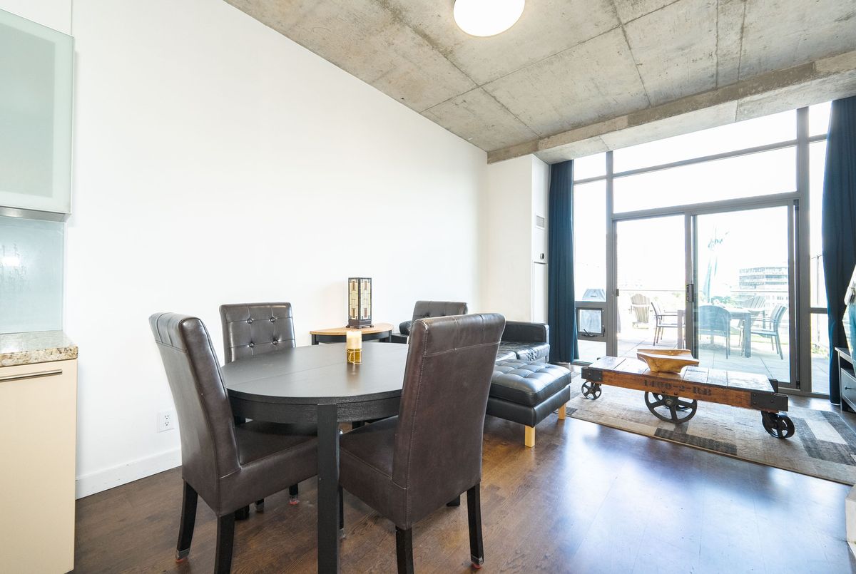 Welcome to urban sophistication in the heart of Torontos iconic Distillery District. This rare 2-storey 1+den suite offers a perfect blend of architectural charm and modern convenience, featuring a massive 330 sq ft private terrace, one of the few in the building where BBQs are permitted, an exclusive perk reserved for 6th-floor units. Ideal for entertaining or unwinding outdoors, this terrace expands your living space in every season. Inside, enjoy a bright open-concept layout with floor-to-ceiling windows, soaring ceilings, and sleek modern finishes. The main level is perfect for hosting, while upstairs, the spacious primary bedroom offers privacy and comfort. The versatile den easily functions as a home office or guest space. A rare owned parking spot is included. Residents enjoy outstanding amenities: a rooftop garden with an outdoor pool and communal BBQs, fully equipped gym, and 24-hour concierge service. Monthly condo fees are an excellent value at $727.39, less than $1 per square foot, a standout offering considering the buildings features and lower than comparable towers in the area. Step outside into the cobblestone charm of the Distillery District, filled with boutique shops, acclaimed restaurants, art galleries, and year-round cultural events. Stroll to St. Lawrence Market, Corktown, or take in lakeside trails, all within minutes. TTC streetcar service is at your doorstep, with easy access to Union Station, the DVP, and Gardiner Expressway, and the future Ontario Line subway station now under construction will further elevate the areas exceptional connectivity. This is your opportunity to own a truly unique residence in one of the citys most desirable historic neighbourhoods.