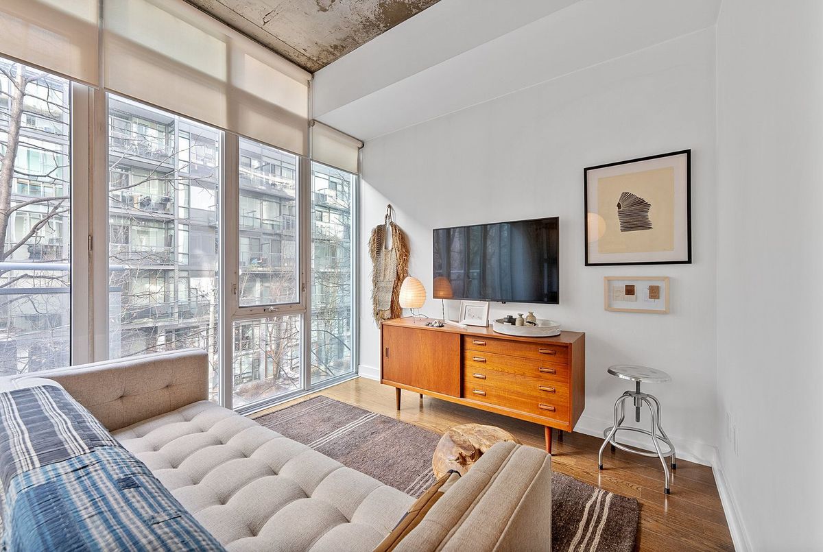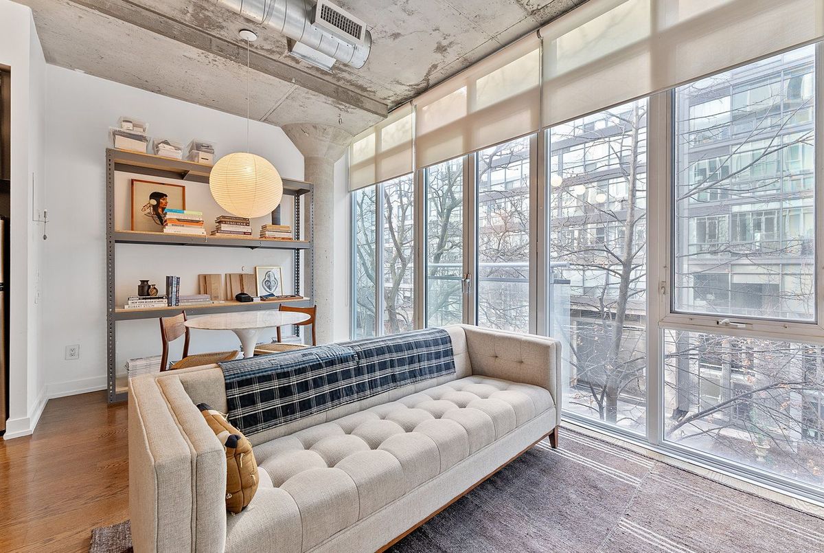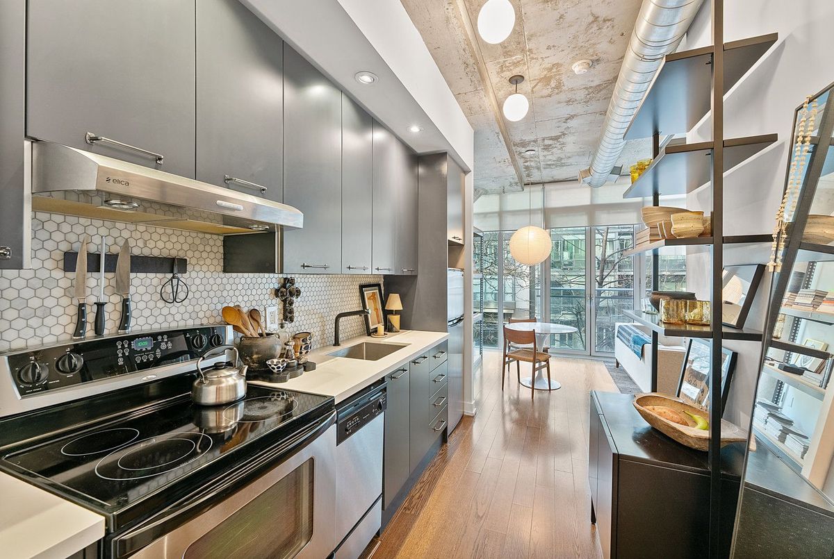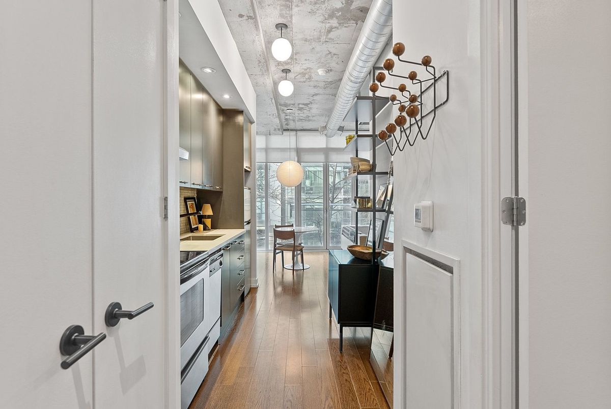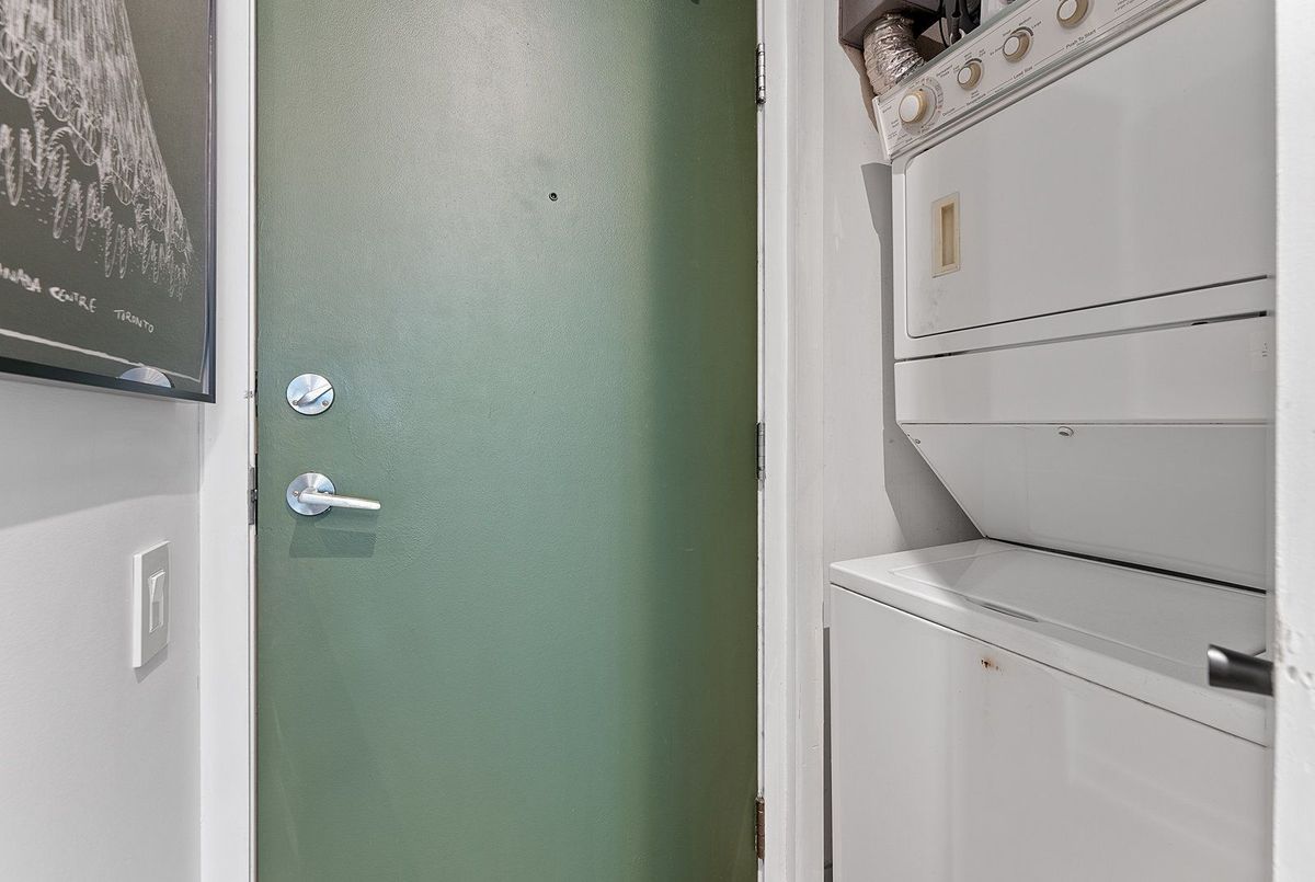 Luxury Loft Living at Twenty Stewart In This Expansively Modern 1 Bed Beauty - One of Only 59 Boutique Lofts in the Building! This Spectacular Soft-Loft Spans Over 500+ Sq Ft & Features Stylish Pops Of Colour, Exposed Soaring 10Ft Concrete Ceilings, A Concrete Accent Pillar, Exposed Ductwork, 10Ft Floor to Ceiling Windows & Smooth Hardwood Floors. Featuring A European-Inspired Pullman Kitchen with Upgraded Pentagonal Tile Back Splash, Sleek Quartz Counters, Stainless Steel Appliances & Plenty of Cabinetry. The Entire South Wing Of This Suite Is Wrapped By 10Ft Floor to Ceiling Windows, Framing The Open Concept Entertainer's Living/Dining Space. Open the Juliette Balcony For Some Fresh Air & Make This Space Feel Even More Light & Breezy! Retreat To The Primary Suite, Cleverly Lit Through A Frosted Clerestory Window & Enclosed By Frosted Sliding Doors - Enjoy A Super-Sized Triple Door Sliding Closet. The Spa-Inspired 4-Piece Bath Is Fully Upgraded With Matte Pentagonal Floor Tiles, A Mix Of Horizontal & Vertical Subway Tiled Walls That Waterfall To The Luxury 2-in-1 Shower/Soaker Tub, Ample Storage Space Tucked Away By Retro Under-Sink Cabinets & A Matte Quartz Vanity That Seamlessly Blends Stainless Steel Finishes. The Foyer Includes A Front Hall Closet & Ensuite Stacked Washer/Dryer!