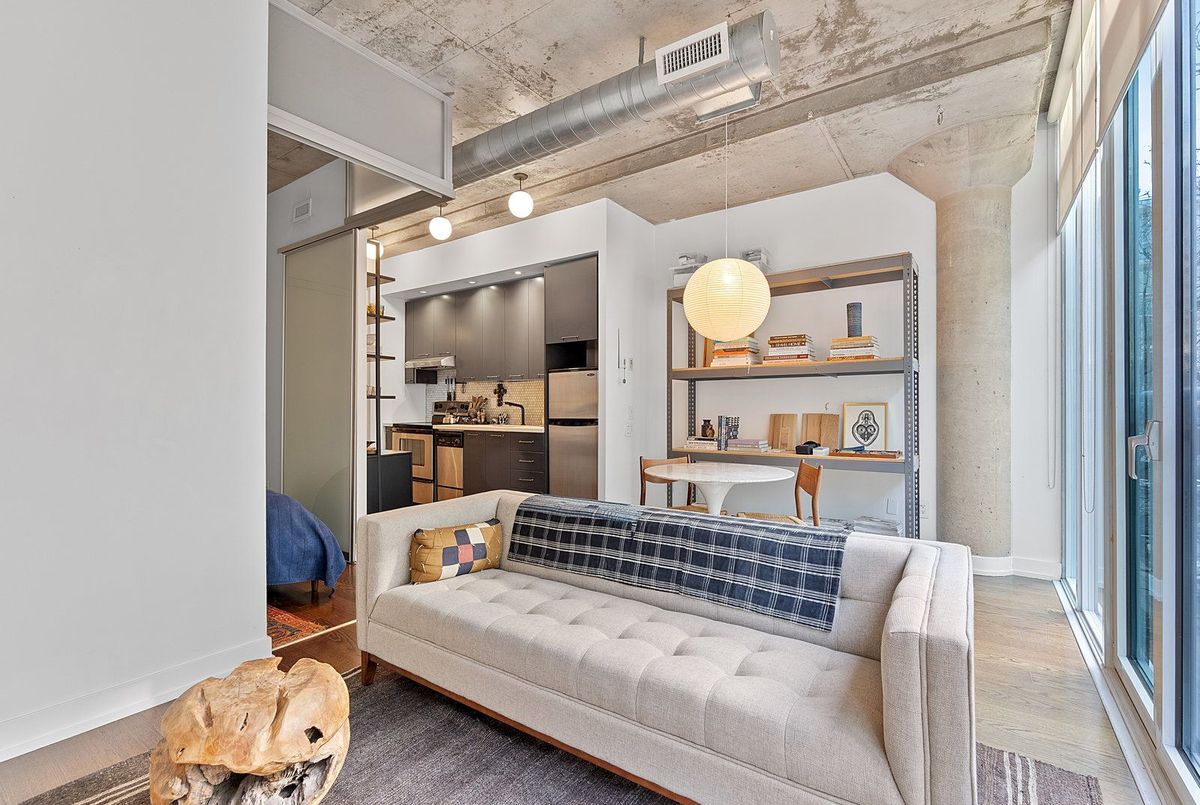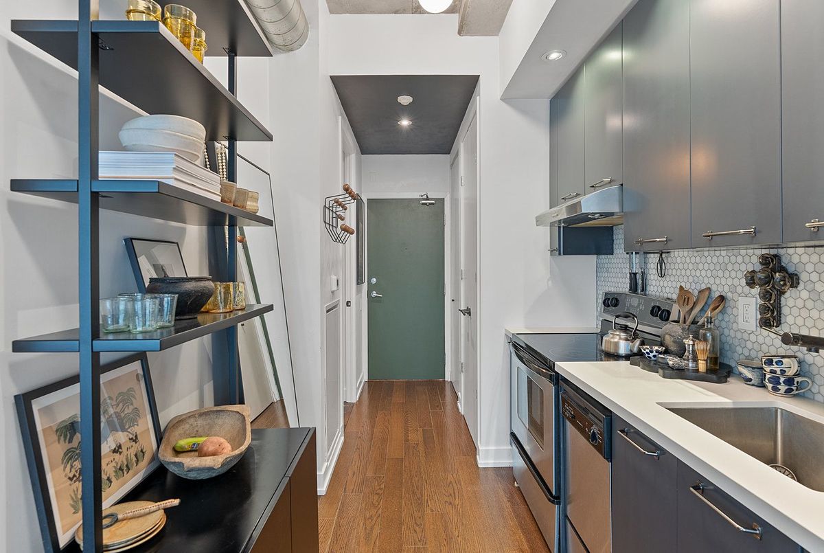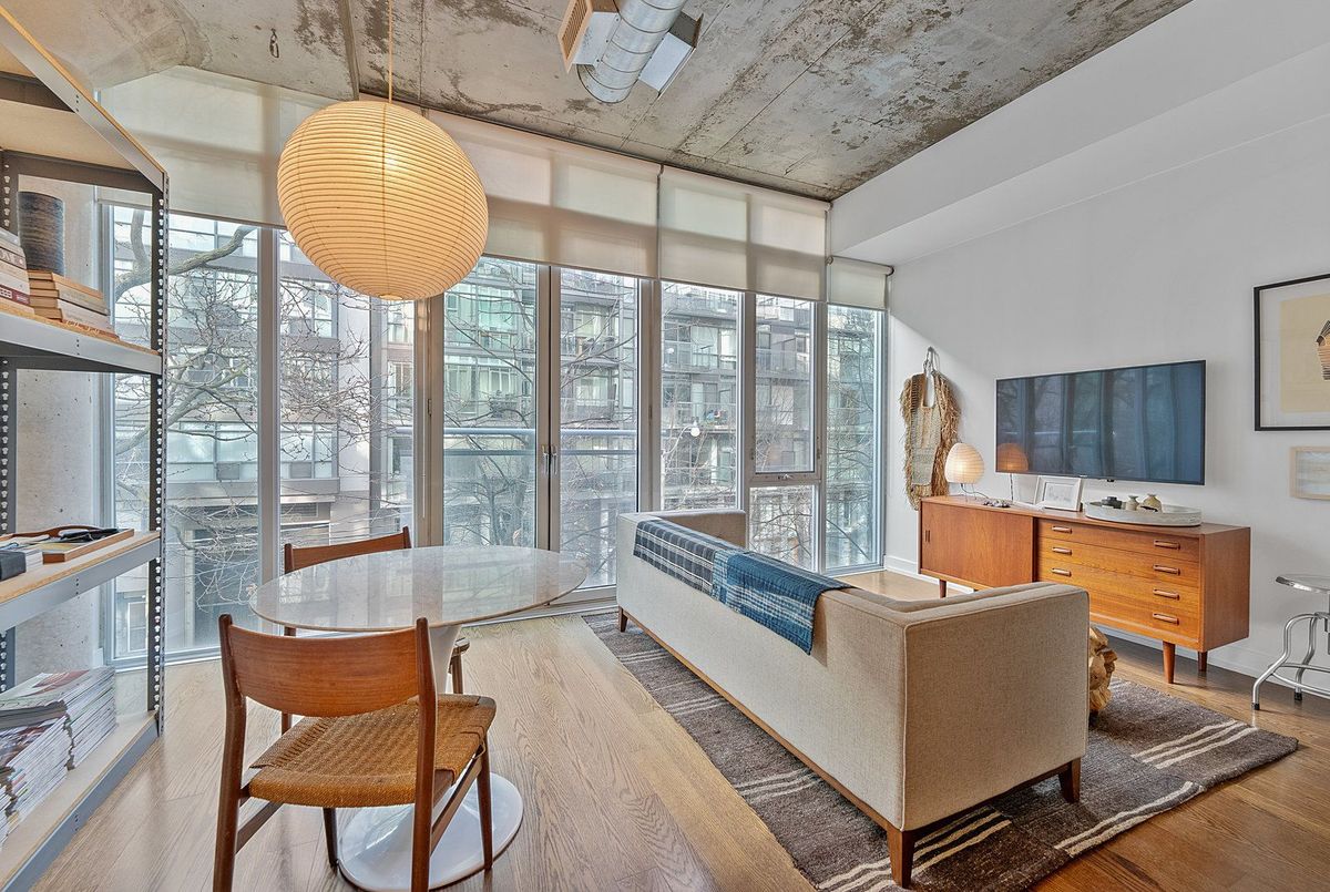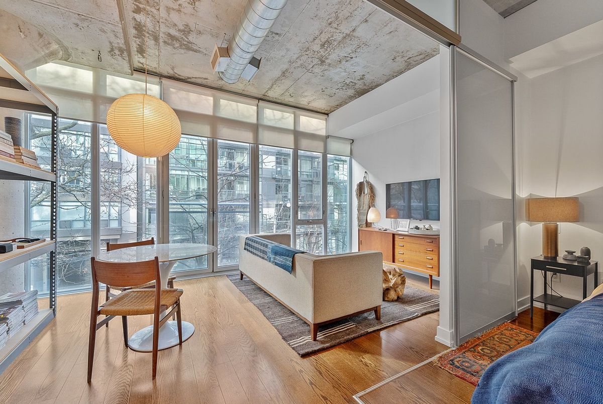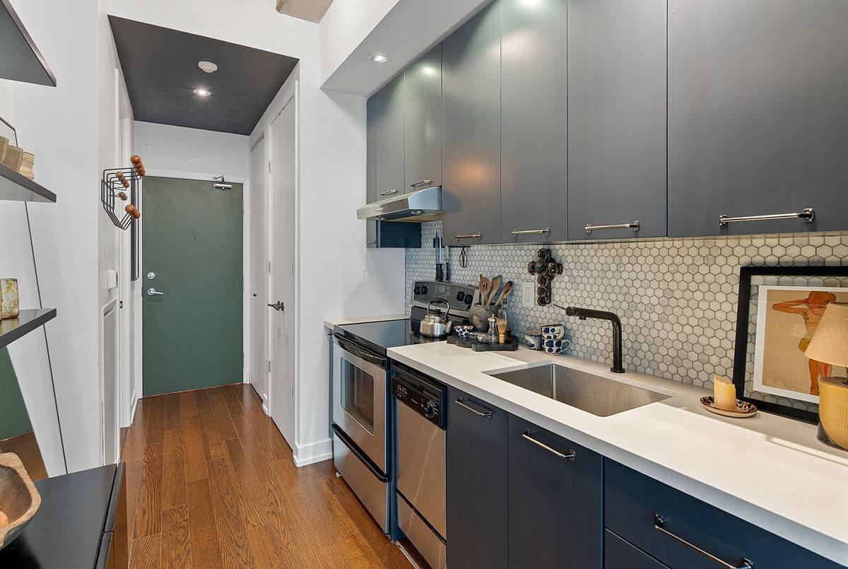 Luxury Loft Living at Twenty Stewart In This Expansively Modern 1 Bed Beauty - One of Only 59 Boutique Lofts in the Building! This Spectacular Soft-Loft Spans Over 500+ Sq Ft & Features Stylish Pops Of Colour, Exposed Soaring 10Ft Concrete Ceilings, A Concrete Accent Pillar, Exposed Ductwork, 10Ft Floor to Ceiling Windows & Smooth Hardwood Floors. Featuring A European-Inspired Pullman Kitchen with Upgraded Pentagonal Tile Back Splash, Sleek Quartz Counters, Stainless Steel Appliances & Plenty of Cabinetry. The Entire South Wing Of This Suite Is Wrapped By 10Ft Floor to Ceiling Windows, Framing The Open Concept Entertainer's Living/Dining Space. Open the Juliette Balcony For Some Fresh Air & Make This Space Feel Even More Light & Breezy! Retreat To The Primary Suite, Cleverly Lit Through A Frosted Clerestory Window & Enclosed By Frosted Sliding Doors - Enjoy A Super-Sized Triple Door Sliding Closet. The Spa-Inspired 4-Piece Bath Is Fully Upgraded With Matte Pentagonal Floor Tiles, A Mix Of Horizontal & Vertical Subway Tiled Walls That Waterfall To The Luxury 2-in-1 Shower/Soaker Tub, Ample Storage Space Tucked Away By Retro Under-Sink Cabinets & A Matte Quartz Vanity That Seamlessly Blends Stainless Steel Finishes. The Foyer Includes A Front Hall Closet & Ensuite Stacked Washer/Dryer!