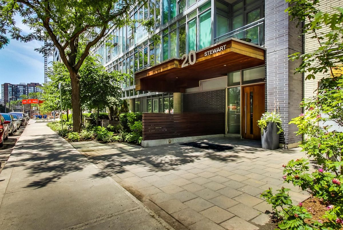 20 Stewart Street is a Condo Property located in the city of Toronto. 20 Stewart Street has been listed For Lease at $2,300 since Jan 15 2026. This Condo Apartment has 1 bedrooms, 1 bathrooms and is 500-599 sqft. Situated in Waterfront Communities C1 neighbourhood , with the nearest intersection being King St W/Bathurst St.