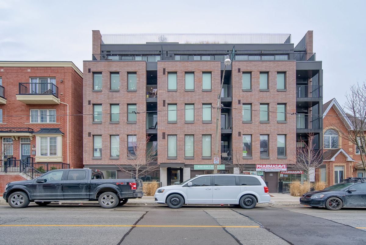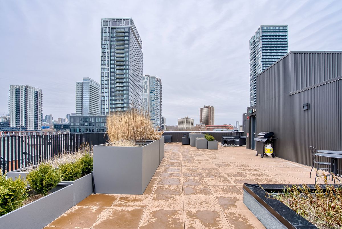 Beautiful 2-bedroom, 2-bathroom unit in a modern multiplex at Queen & River! This upscaleresidence features polished concrete floors throughout, abundant natural light, a functionalsplit-bedroom layout, and a large terrace with double doors for effortless indoor/outdoorliving. A semi-ensuite bathroom adds convenience. Boutique building with keyless entry, EVcharging, party room, and a rooftop patio with views of the CN Tower. Eco-friendly buildingwith geothermal heating and cooling. Bell WiFi included. Steps to TTC, the Distillery District,Riverside, and nearby walking trails. Parking available