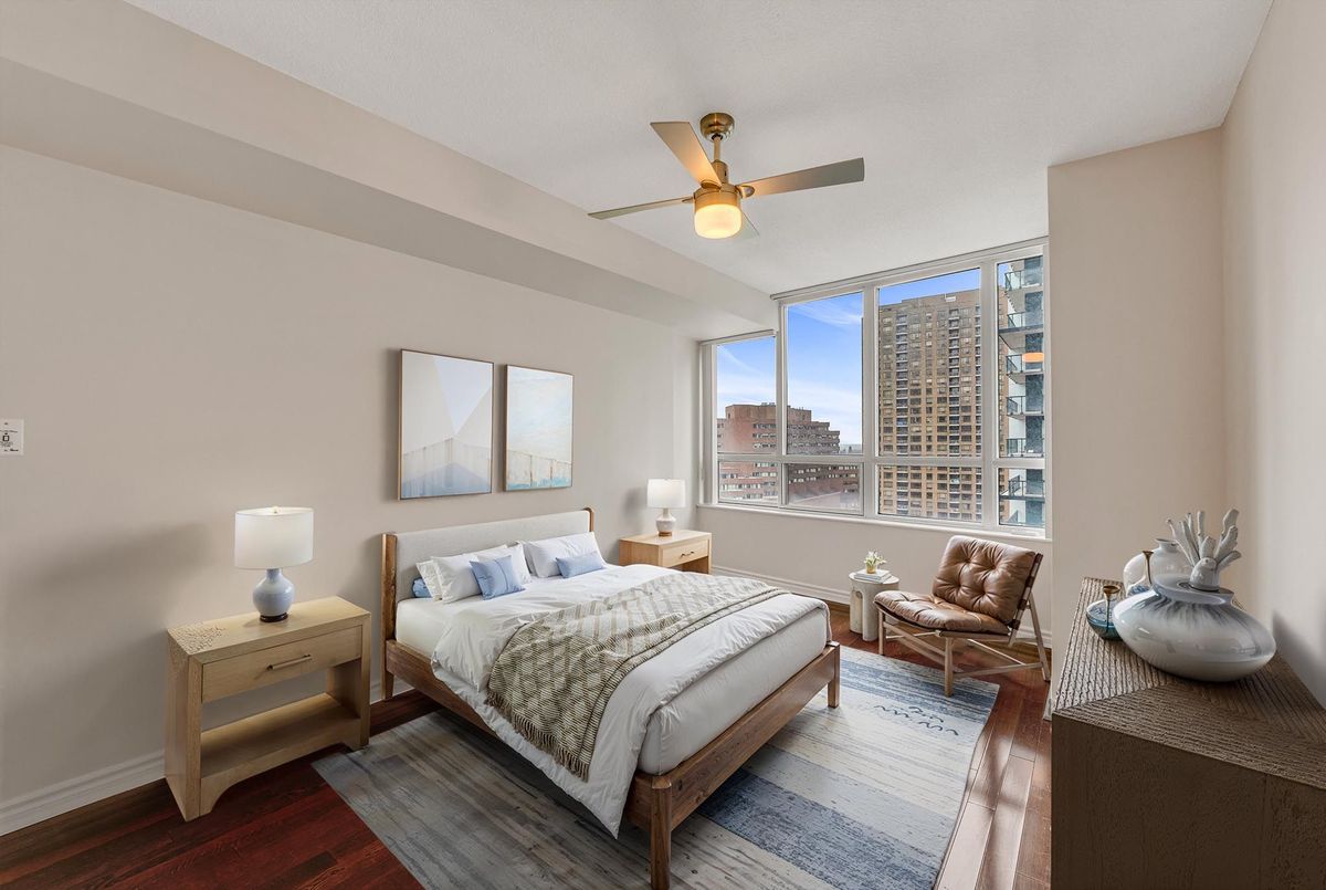 Step into this bright and spacious two-bedroom corner suite in the prestigious Platinum Towers XO. Flooded with natural light, the open-concept layout features two walk-outs to a large private balcony-perfect for relaxing or entertaining. The generous primary bedroom offers a walk-in closet and a private ensuite, creating a comfortable and private retreat. Residents enjoy access to an exceptional suite of amenities, including a bowling alley, indoor pool, sauna, fully equipped fitness centre, aerobics studio, conference room, theatre, and guest suites. Ideally situated in the heart of North York, this residence offers outstanding walkability to shops, restaurants, and transit, along with convenient access to Highway 401. Complete with one owned parking space, one owned locker, and all-inclusive maintenance fees, this is an outstanding opportunity to enjoy luxury condo living at exceptional value.