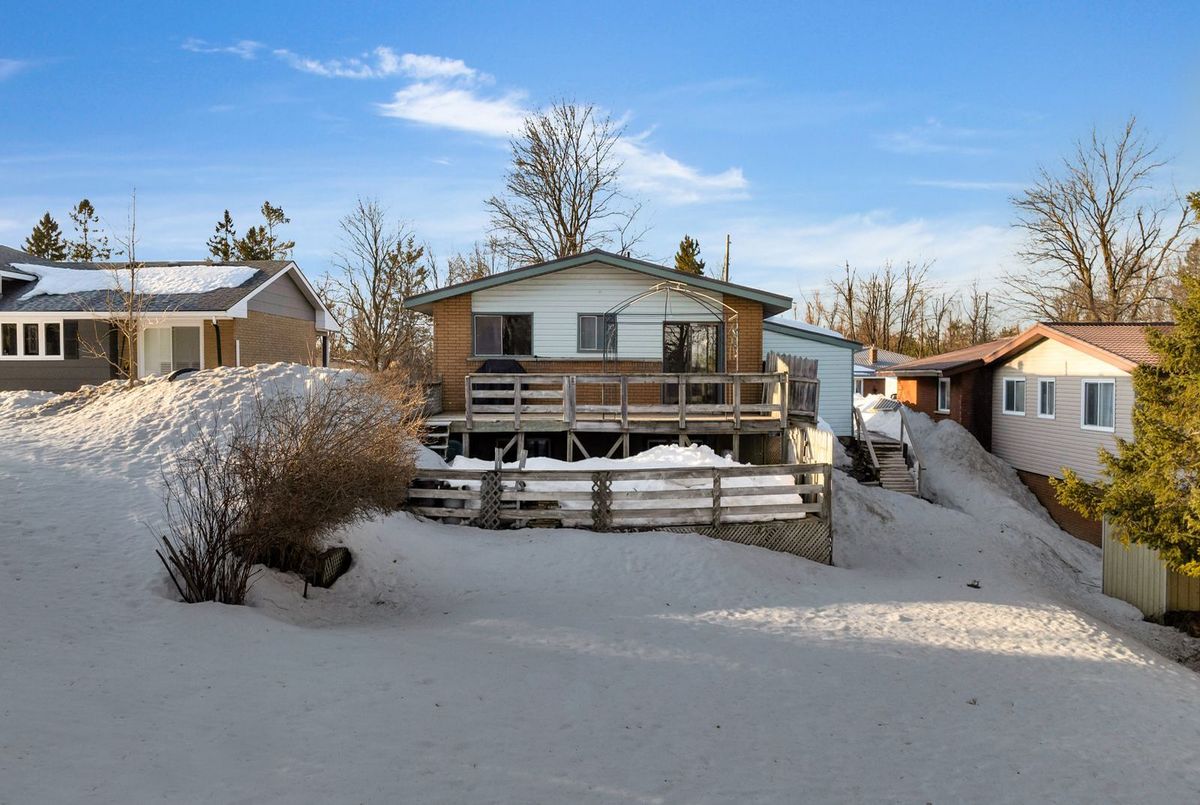 CHARMING BUNGALOW ON A QUIET, TREE-LINED STREET WITH WALKOUT LOWER LEVEL & IN-LAW SUITE POTENTIAL! Discover the charm and opportunity of this detached bungalow tucked in a well-established neighbourhood where tree-lined streets create a quiet, welcoming atmosphere. Daily life here is convenient, with shopping plazas, dining options, and the Couchiching Golf and Country Club all nearby, while multiple top schools are just a short stroll away for families with school-aged children. On weekends, enjoy a quick 5-minute drive to Couchiching Beach, scenic parks and lakeside boardwalk trails, or spend an afternoon exploring the vibrant shops, cafés and restaurants of downtown Orillia. Set on a deep lot backing onto mature trees, this home offers a spacious backyard and a large deck that invites summer gatherings, morning coffee in the sun, and relaxed evenings. With no sidewalks to maintain, enjoy generous parking with space for four vehicles in the driveway plus an attached single garage with interior access and two man doors. Inside, the bright main floor welcomes you with large windows that fill the space with natural light, durable laminate flooring, and a functional layout, featuring a living room, dining area and kitchen that flow easily together. Three spacious bedrooms are located on the main level, including one with a walkout to the deck, and a well-appointed 4-piece bathroom. The finished lower-level walkout adds exceptional versatility with a rec room, family room, bedroom, second kitchen, laundry area, and a 3-piece bathroom, creating excellent potential for an in-law suite. A natural gas wall-mount heater in the basement, along with a gas fireplace in the main floor living room, provides a cozy ambiance and contributes significantly to the home's heating. This #HomeToStay presents an exciting opportunity for first-time buyers to step into the market, build equity over time, and make the space their own.