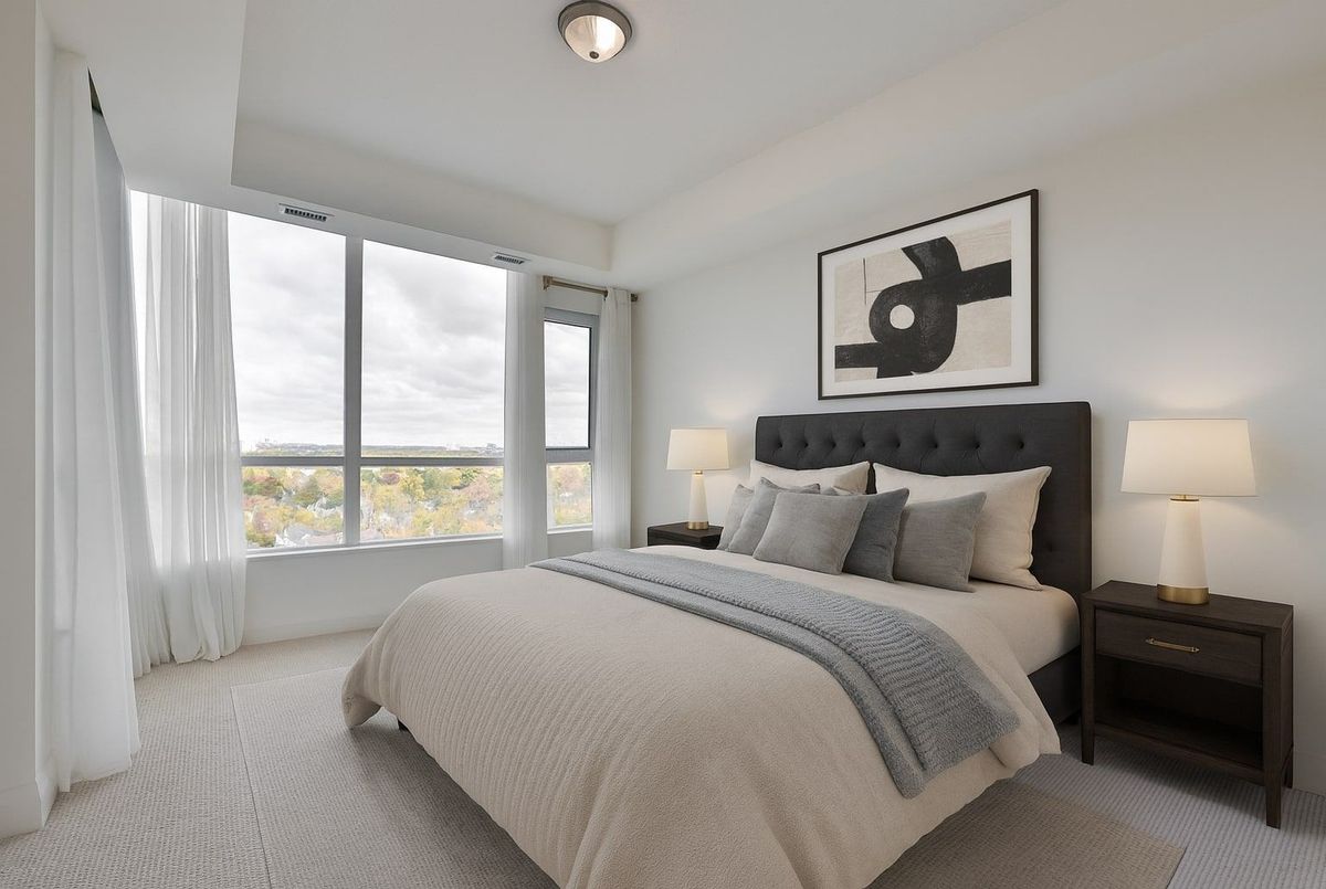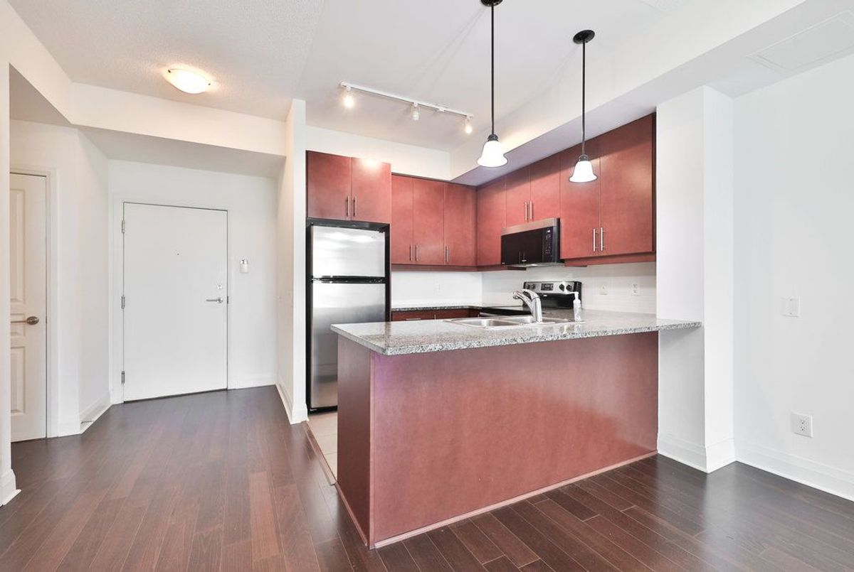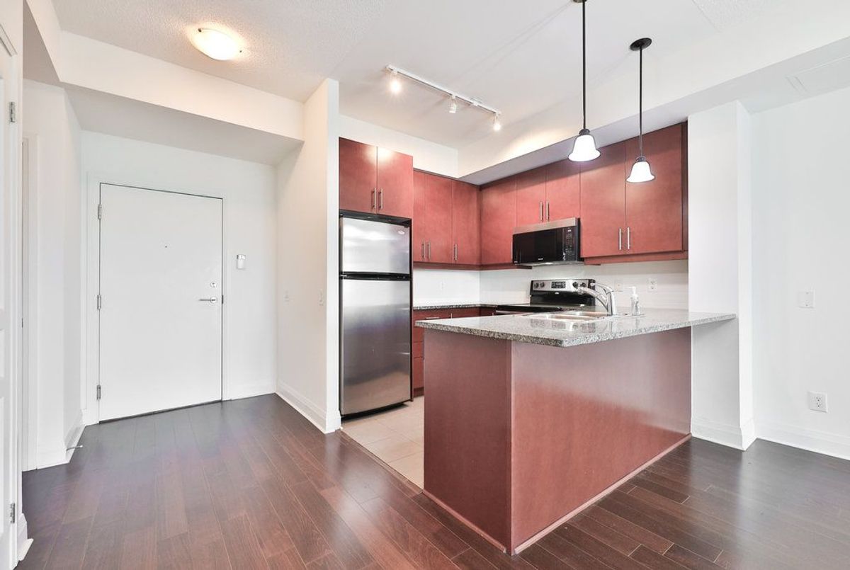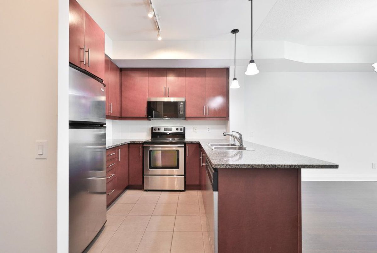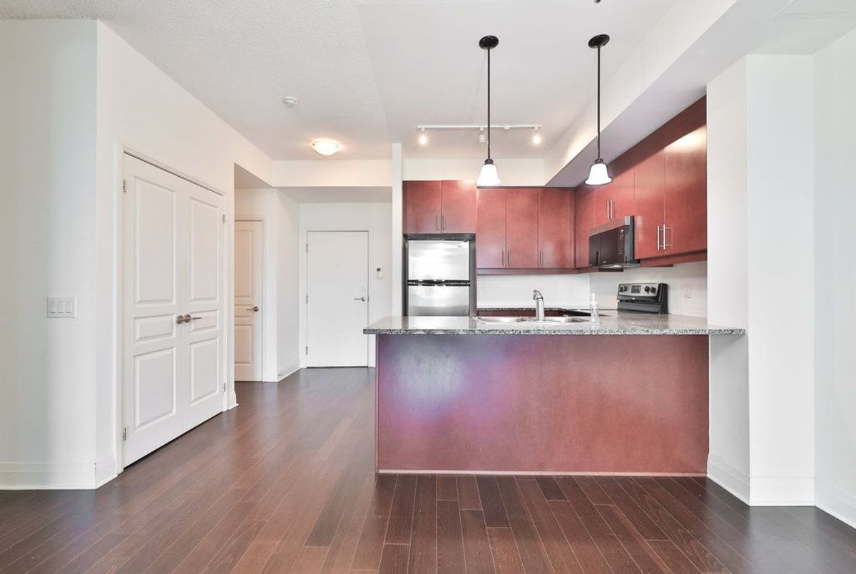Enjoy stunning city views from this spacious nearly 950 sq ft unit, offering 1 bedroom plus a versatile den. This bright and modern unit features 9' ceilings, granite kitchen countertops, halogen track lighting, and sleek engineered wood flooring throughout. Residents enjoy access to exceptional building amenities, including a party room, rooftop patio, landscaped courtyard, fully equipped exercise room, and 24/7 concierge service. All located in the vibrant heart of downtown Port Credit, steps from shops, restaurants, and transit.