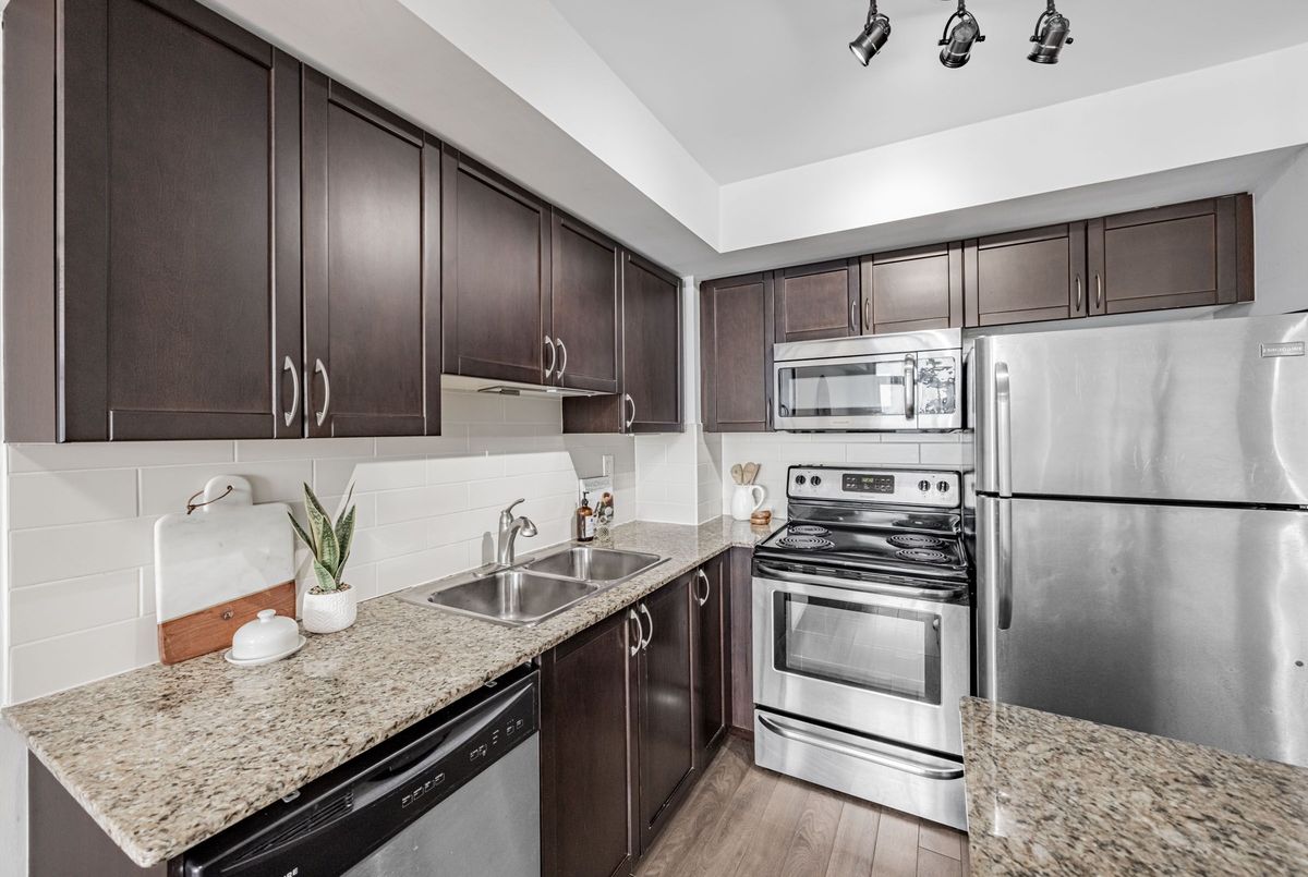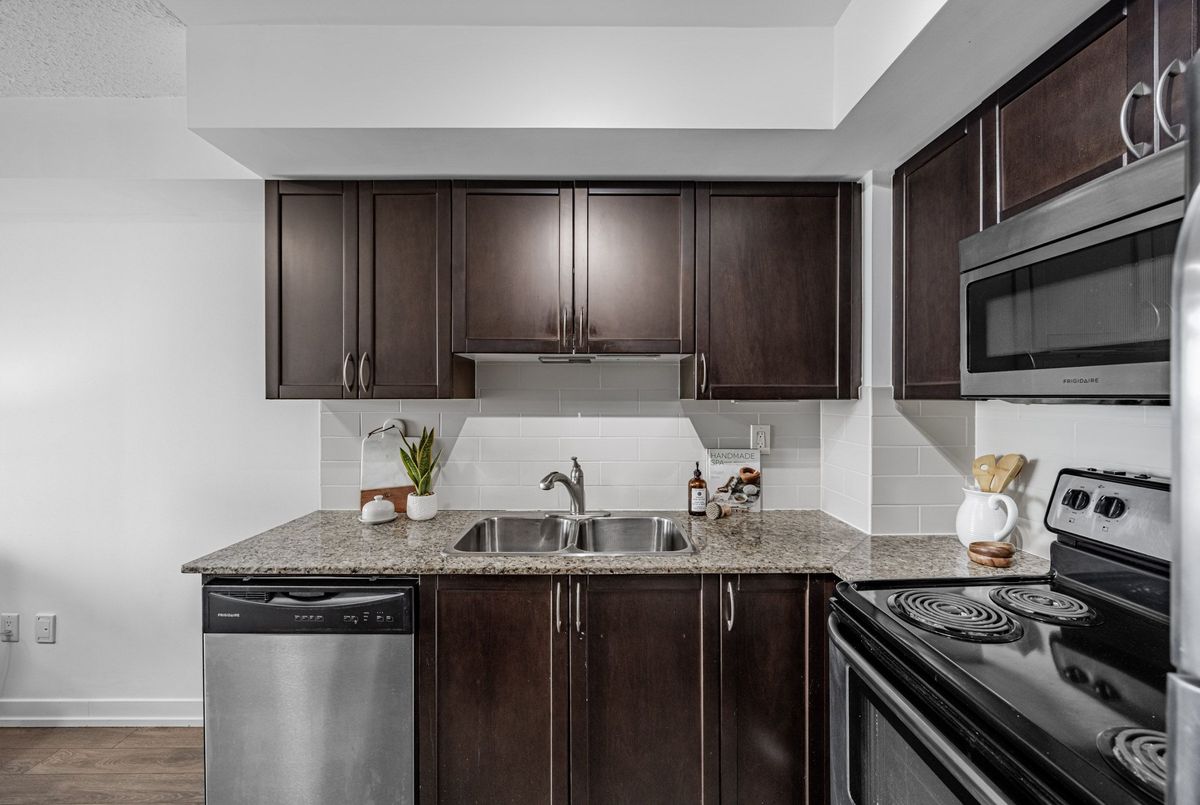Welcome to this bright and very spacious 1+1 bedroom condo in the vibrant Dovercourt neighbourhood. Thoughtfully designed to maximize both space and functionality, this sun-filled suite features a west-facing private balcony, filling the suite with natural light and offering beautiful sunset and city views. The open-concept living area is perfect for both relaxing and entertaining, while the kitchen boasts granite countertops and stainless steel appliances. The large primary bedroom provides a comfortable retreat, and the versatile den is ideal for a home office or dining area, perfect for today's flexible lifestyle. Complete with one parking space, this condo offers exceptional convenience in a sought-after location. Steps from the trendy restaurants, cafés, and breweries of Geary Avenue, and within an easy reach of the Bloor-Lansdowne Station, the UP Express, and GO Transit, commuting across the city is effortless. Enjoy nearby Earlscourt Park for green space, recreation, and year-round community activities + much more neighbourhood amenities!