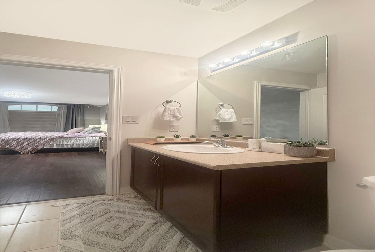 Beautifully upgraded 3-bedroom corner-unit executive townhouse in the highly sought-after West Oak Trails community. This bright and stylish home offers a spacious open-concept layout with 9 ft ceilings, large windows, and a modern kitchen featuring stainless steel appliances, a breakfast bar, and a walk-out to a generous private balcony-perfect for morning coffee or evening relaxation. Enjoy the convenience of second-floor laundry and two well-appointed primary bedrooms, each with its own 4-piece ensuite. The versatile main-floor third bedroom is ideal as a home office, guest suite, or studio space. Located in a quiet, family-friendly inner complex, this home offers exceptional walkability to top-rated schools, parks, trails, shopping, and Oakville Trafalgar Memorial Hospital. Minutes to major highways and Bronte GO Station for easy commuting. A rare opportunity to own a sun-filled, move-in-ready home in one of Oakville's most desirable neighborhoods.