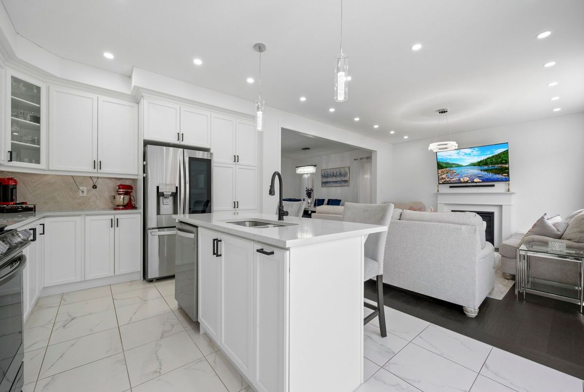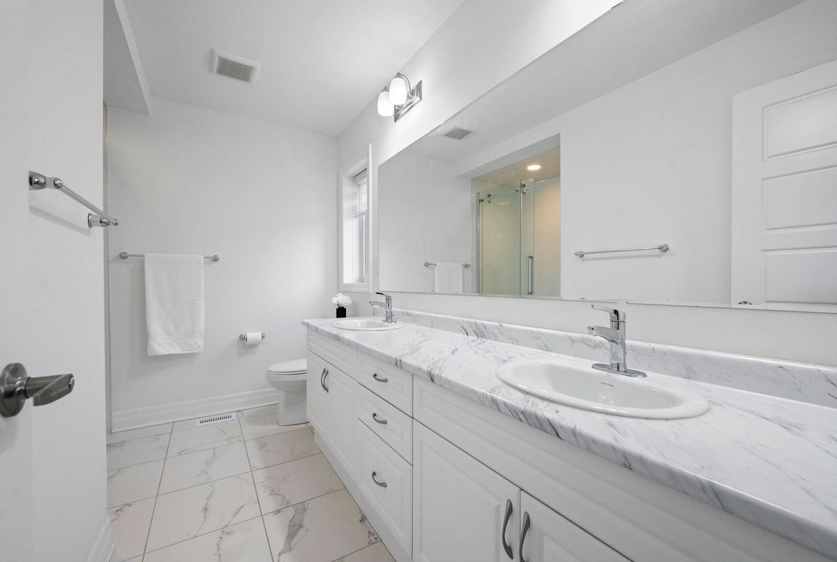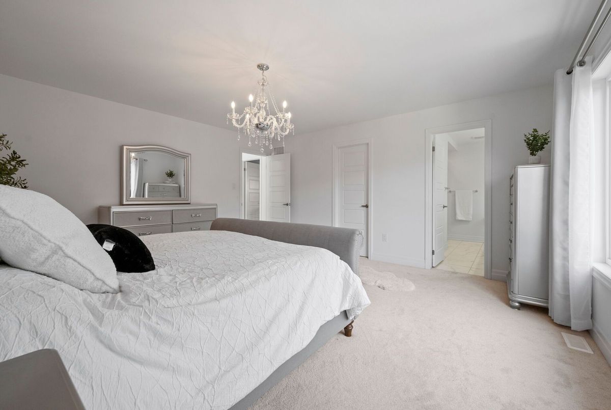 Shows 10/10! Stunning executive "The Lawson" Mattamy model detached home located in one of Milton's most desirable family-friendly neighbourhoods! This beautifully designed 4-bedroom, 4-bathroom home showcases an elegant stucco and brick exterior with exceptional curb appeal and is still covered under the 7-Year Tarion New Home Warranty, offering added peace of mind for the new owners. Step through the double-door entry into a bright and spacious main floor featuring 9-foot ceilings, hardwood flooring, and a large family room complete with upgraded light fixtures, pot lights and a cozy natural gas fireplace. The chef-inspired kitchen is a true showstopper, equipped with high-end appliances, a gas stove, upgraded cabinetry, and a custom centre island-perfect for entertaining family and guests. Upstairs, you'll find four generously sized bedrooms and three full bathrooms, including a primary ensuite with double sinks and an additional guest room with an ensuite. A convenient second-floor laundry room adds to the home's functionality and everyday comfort. The exterior is just as impressive featuring no sidewalk, parking for up to 6 vehicles (4 in the driveway and 2 in the garage), custom interlocking in the backyard, and plenty of space for outdoor enjoyment. A true turn-key home that must be seen to be fully appreciated!