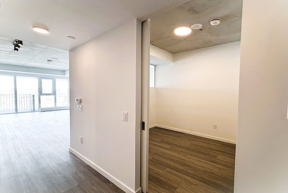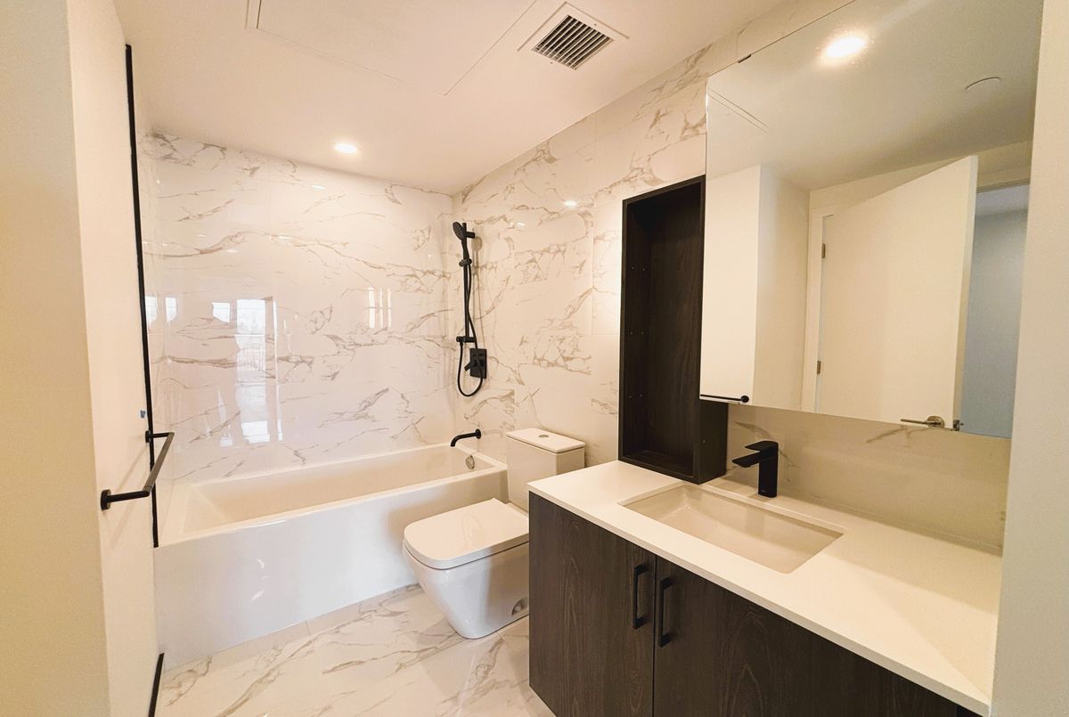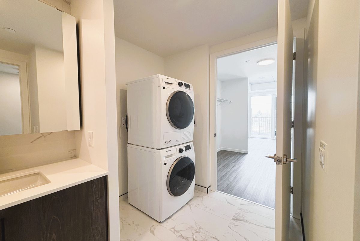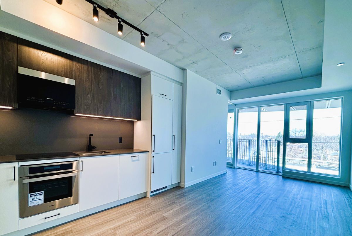 Welcome to Reina Condos, a boutique residence by award-winning developer Urban Capital, known for thoughtful, community-focused design. This beautifully laid out 1 bedroom + den suite with 1 bath and walk-in closet offers approximately 675 sq. ft. of bright, open-concept living. Enjoy a modern kitchen with quartz countertops, sleek cabinetry, and quality appliances, flowing seamlessly into the living and dining area. The versatile den with a door is ideal for a home office or guest space, while the private balcony offers a perfect spot to unwind. Residents enjoy premium amenities, including a fitness studio, party lounge, and landscaped courtyard with BBQ area. Prime location-steps to transit and minutes to Go station, The Queensway's shops, cafés, parks, and easy access to downtown.