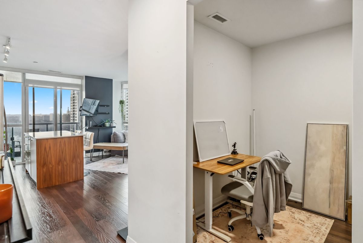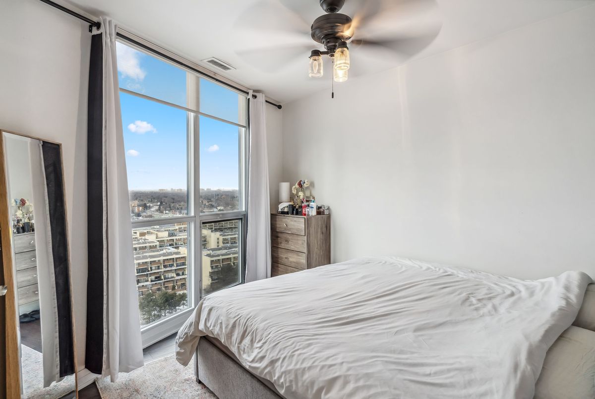 Welcome to 5 Valhalla Inn Road, Unit 1710. This bright corner unit offers west and north-facing views, with some incredible sunsets you can enjoy right from your private balcony. Inside, the layout is both spacious and practical, featuring a one-bedroom plus den setup. The den is a great bonus space that is ideal for a home office, nursery, or even just extra storage depending on your needs. You'll also have the convenience of ensuite laundry. The unit includes one parking space and is perfectly positioned for easy commuting, with quick access to Highway 427, the QEW, and the Gardiner Expressway. Location-wise, it's hard to beat. You're under 10 minutes to Pearson Airport, Sherway Gardens, IKEA, and Costco, with plenty of dining and everyday essentials nearby. Humber College Lakeshore Campus is also just a short 15-minute drive.The building itself is well-maintained and offers amenities like a gym and visitor parking for your guests. A great option if you're looking for a well-located, functional space in a convenient west-end pocket of the city. Please note: photos are from a previous tenant.