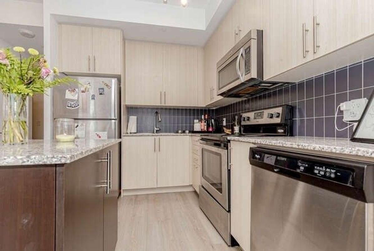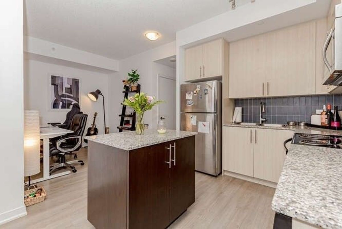 Discover the epitome of urban living with this spacious open concept 1-bedroom plus den condo in the vibrant heart of downtown Kitchener, Large Den Can Be Used As A Guest BR. LRT On The Door Step. The carpet free condo offers a spacious layout, providing ample room for living, working, and entertaining, while providing lots of natural light throughout. The modern kitchen is equipped with a spacious island and stainless steel appliances, ensuring both style and functionality. The spacious primary bedroom, with a good size closet offers lots of floor natural light with floor to ceiling windows. Step outside onto your large balcony directly from the living room, offering a perfect retreat to relax and enjoy city views. Convenience at its best with in-suite Laundry. Furthermore, residents can enjoy access to amenities available in the nearby building at 55 Duke St W. Comes With 1 Parking & Locker. Lots of natural light and unobstructed views. This City Center Condo is In A Great Building- Prime Location Within Proximity To Restaurants, Shops, Markets, Parks, Schools, City Hall & Transit. 24 Hr Concierge And Amenities Include Party Room With Kitchen, Media Room, Rooftop Terrace With Bbq.