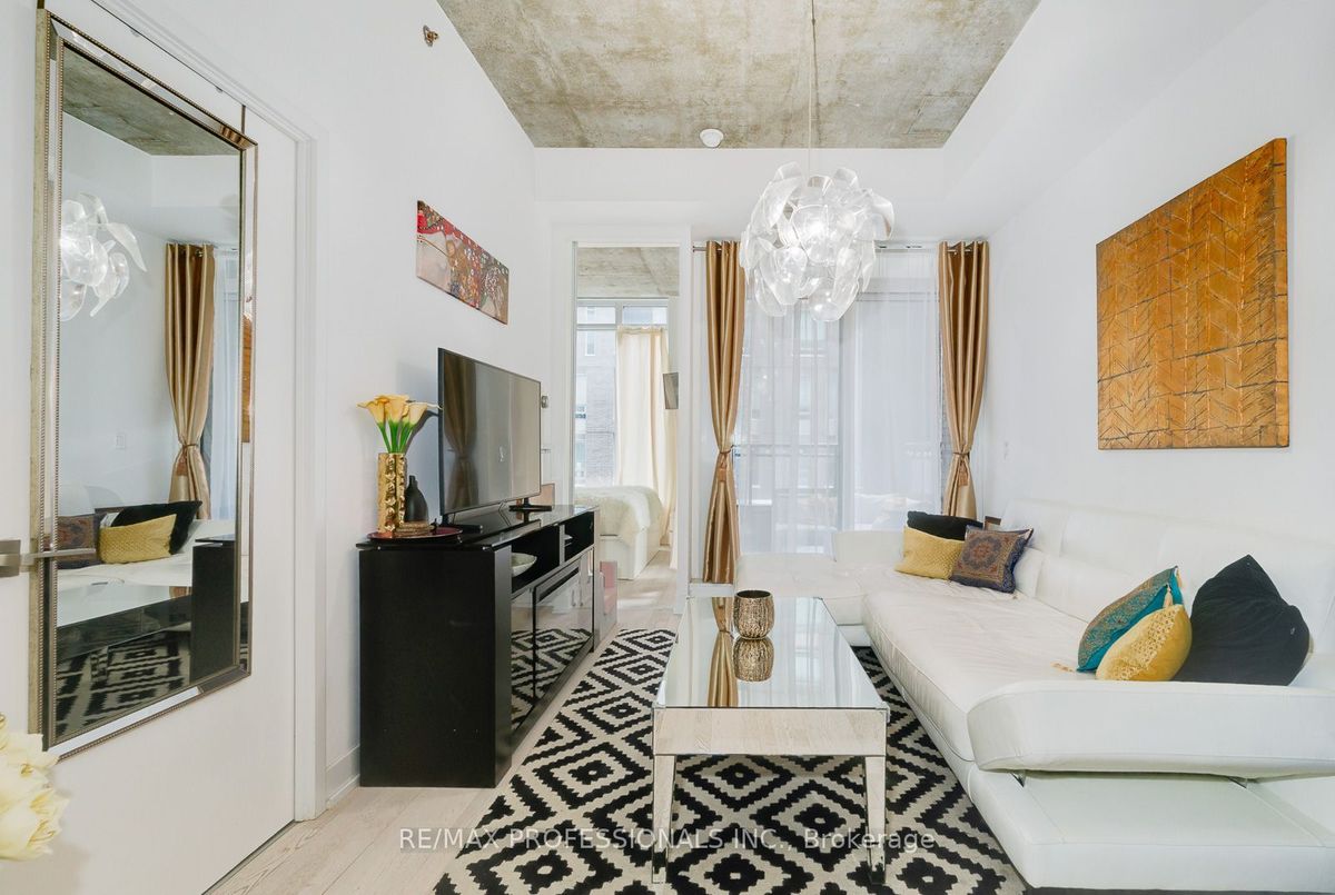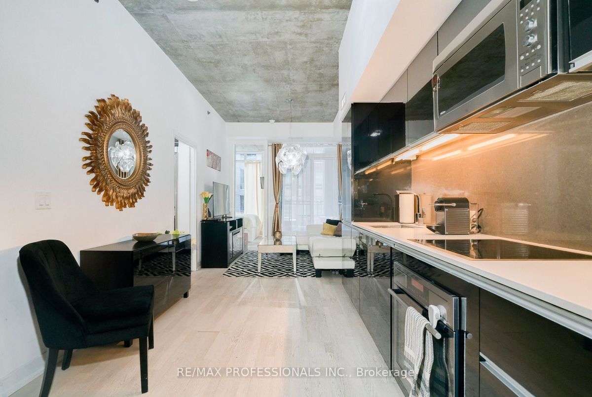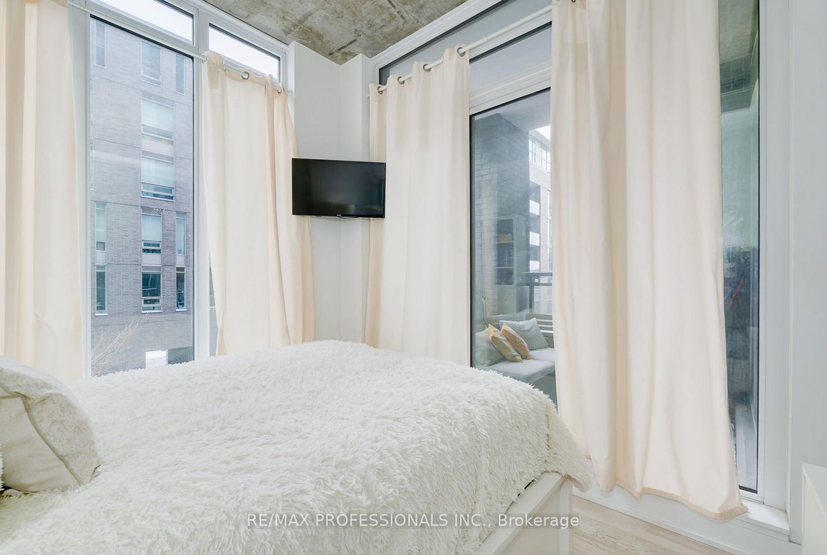 Available April 1st. Loft-style 2-bedroom, 1-bath suite featuring rare 10' ceilings and a well-designed, efficient layout ideal for both everyday living and entertaining. Modern designer kitchen with quartz countertops and backsplash, plus integrated high-end appliances. Versatile second bedroom suitable for a home office or guest space. Both bedrooms with walk-in closets and organizers. Located steps from top restaurants, cafés, bars, shops, and parks. Nearby 24-hour streetcar service for a quick ride into the core. Building amenities include a concierge, oversized gym (pictures taken before upgrade), luxurious party room, rooftop terrace with BBQ area, guest suites, and visitor parking. Parking and hard to find locker included. Locker can easily rent for $50-$75 per month to someone in the building if not needed. Won't last. Get it before it's gone! ...
