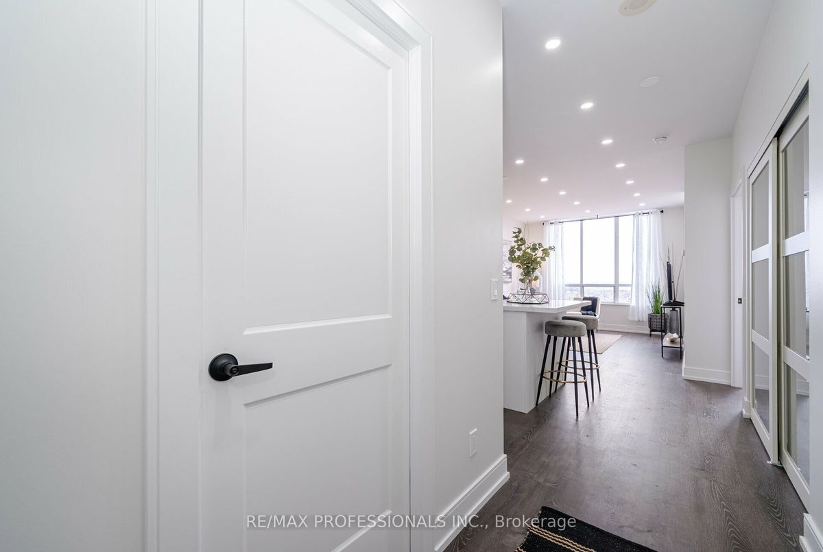 Step into sophisticated penthouse living at the prestigious Humber Mansions by Tridel. Fully renovated in 2024, this breathtaking residence showcases exclusive 9 smooth ceilings, a designer kitchen with quartz countertops and island, a spa-inspired bathroom, and custom finishes throughout, including all-new flooring, doors, and modern pot lighting. Flooded with natural light, the open-concept layout offers panoramic views and seamless indoor-outdoor living with a private balcony. The spacious primary suite features a large walk-in closet, while ensuite laundry adds everyday convenience. Residents enjoy world-class amenities: a 24-hour concierge, indoor pool with hot tub and sauna, tennis courts, state-of-the-art fitness centre, billiards and party rooms, plus guest suites for visitors. Ideally located just minutes from Woodbine Racetrack & Casino, Pearson Airport, Humber College, premier shopping, hospital, TTC, and major highways this penthouse is where luxury meets lifestyle.