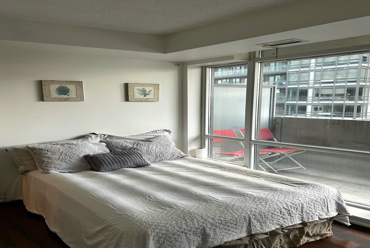 Welcome to Fuzion Condos! This exceptional 829 sq. ft. southeast corner unit offers one of the building's most sought-after split-plan layouts, framed by floor-to-ceiling windows that showcase unobstructed, breathtaking views of the CN Tower, The EX, Lake Ontario, and BMO Field. The interior is truly move-in ready, featuring fresh paint throughout, brand-new toilets, and updated bathroom vanities. The spacious primary bedroom includes a walk-in closet and a private 4-piece ensuite, while the second bedroom offers a full-sized closet and direct balcony access. This unit comes complete with one parking spot and one locker. Residents enjoy amenities including a gym, party room, and rooftop deck, all while being steps from the vibrant shops and dining of both Liberty Village and King West. With the King Streetcar at your doorstep and easy access to the Gardiner Expressway, this suite perfectly blends functional design with a prime downtown location. Come see today! ...