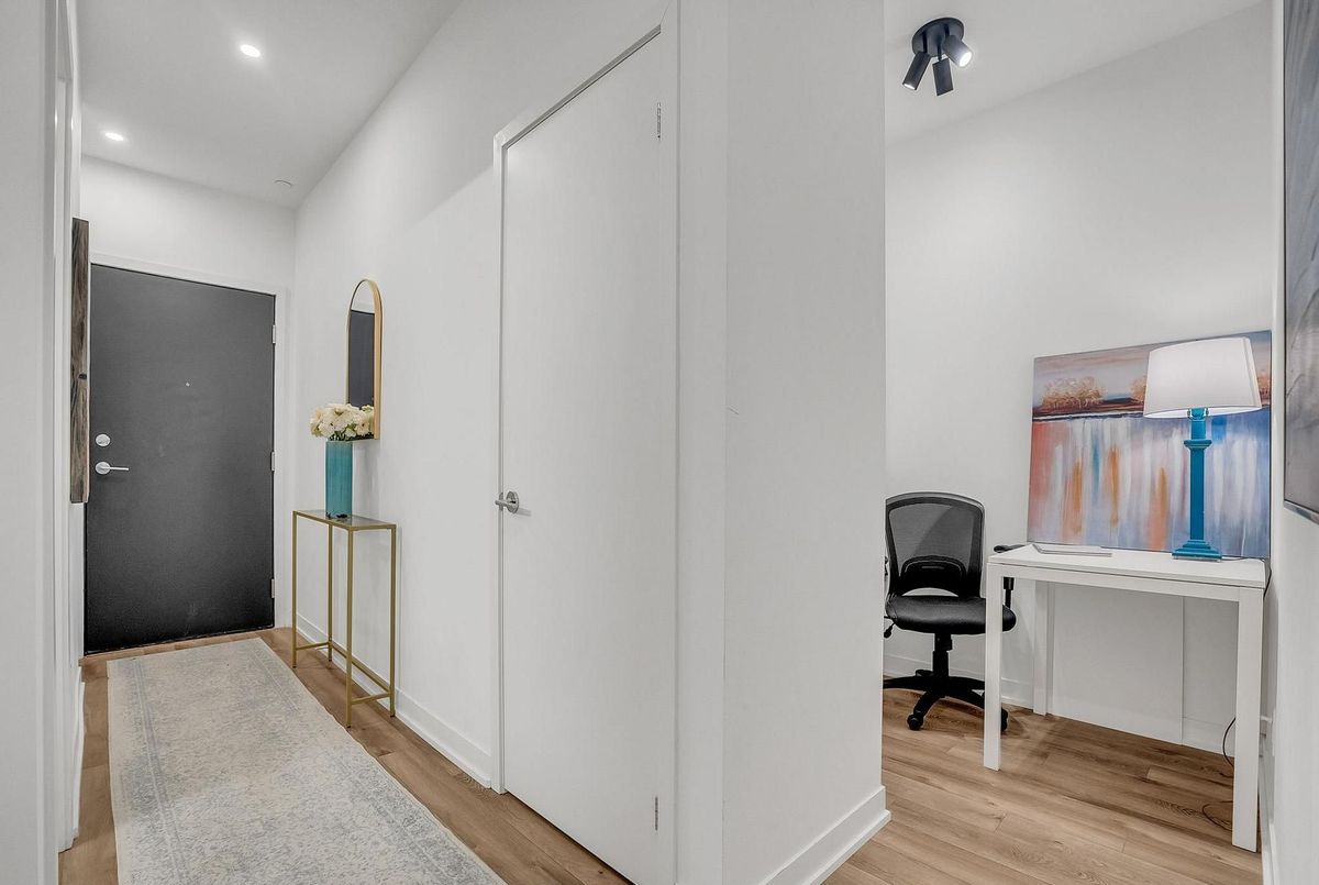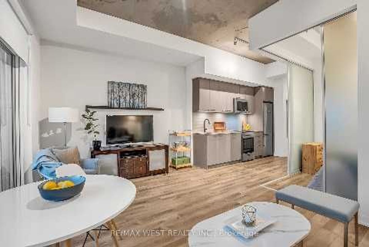 What a great view! Discover urban sophistication in this new 1 Bedroom + Den condo suite. Featuring 9-10 ft raised ceilings, wall-to-wall windows with roller light-control shades, and luxury finishes throughout, this home is designed for chic stylish living. The open-concept layout flows seamlessly. A sleek kitchen with quartz countertops, ceramic backsplash, and integrated dishwasher and stainless-steel appliances. The bright bedroom offers modern sliding doors, and custom closet organizer. The living room views are exceptional with sunsets to be enjoyed. Building features exceptional amenities: Scandi-inspired lobby, fitness rm, bookable party rm, pet spa, BBQ area, rooftop patio with stunning views. Steps from the streetcar and the future SmartTrack GO Station, there is access to downtown and the 400 Hwy series. Close to High Park, Little Italy, and Corso Italia you are not far from trendy cafés, restaurants, parks. Reunion Crossing Condo earned an OHBA Award of Distinction nomination for High-Rise Condo Suites and was a finalist in the BILD Awards for Best Mid-Range Mid-Rise Building Design, a testament to its exceptional architecture and thoughtful design. Perfect for first-time buyers or downsizers seeking style, convenience, and connectivity in a thriving urban community. Book your private showing today!